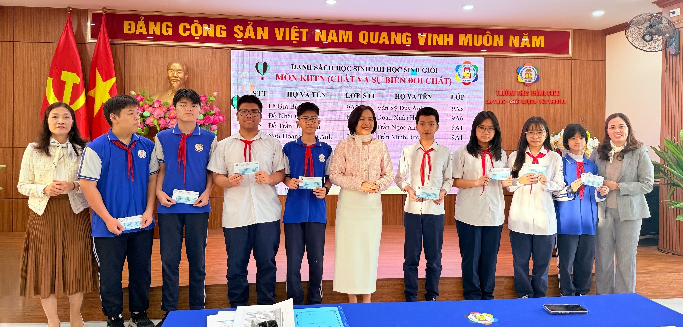 Ban giám hiệu nhà trường cùng Đội tuyển học sinh giỏi môn KHTN (Chất và sự biến đổi chất)