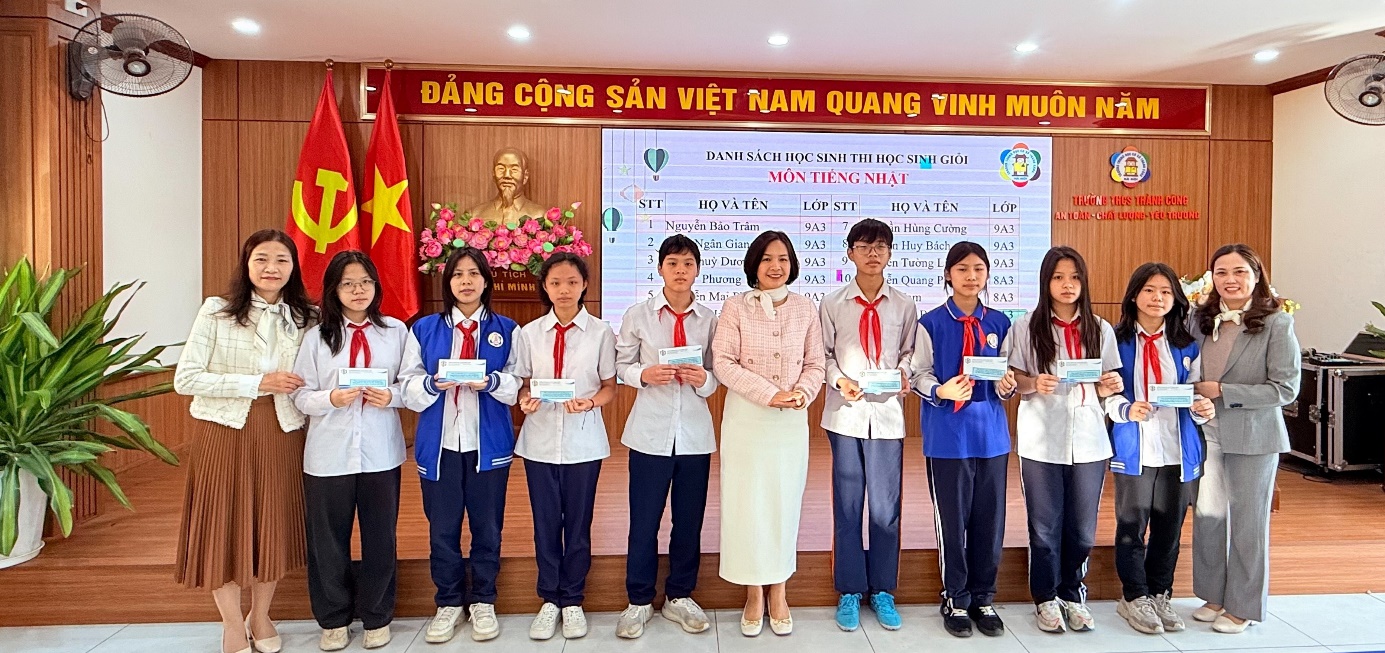 Ban giám hiệu nhà trường cùng Đội tuyển học sinh giỏi môn Tiếng Nhật
