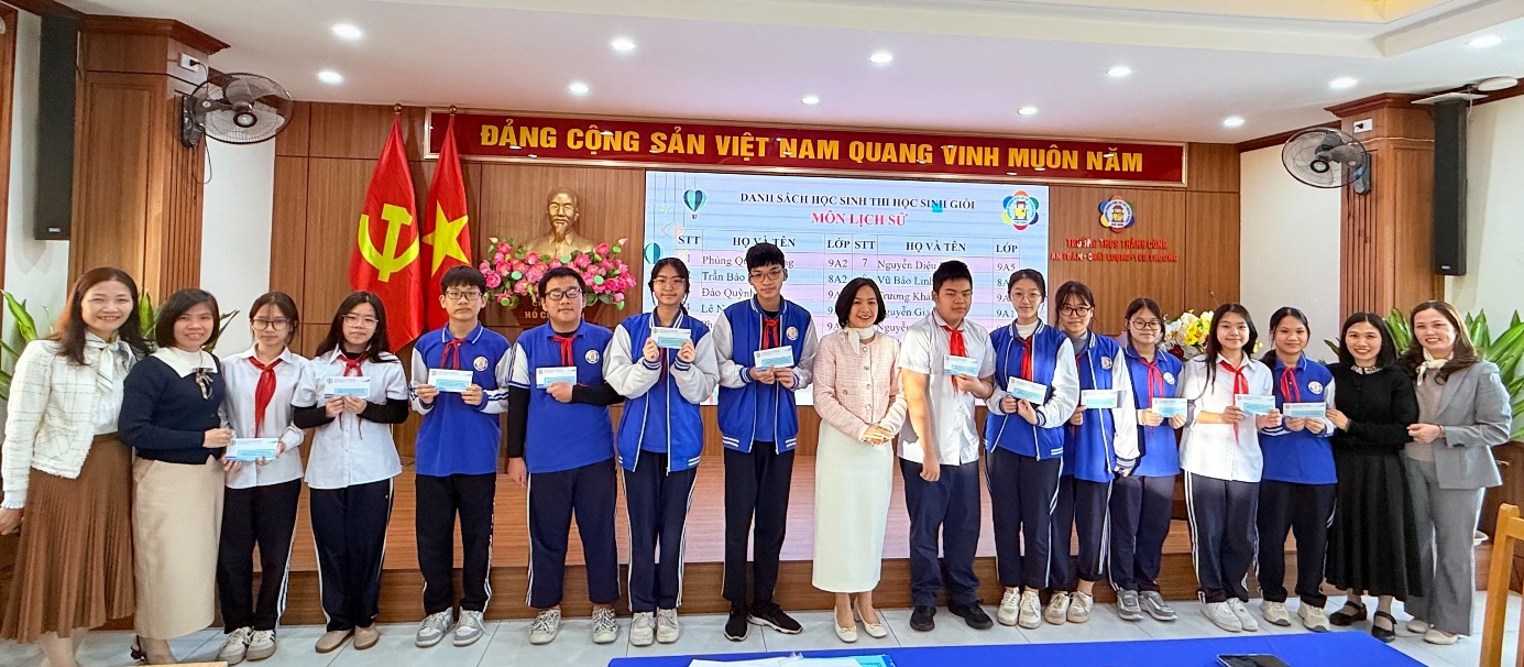 an giám hiệu nhà trường, cô giáo lãnh đội cùng Đội tuyển học sinh giỏi phân môn Lịch sử