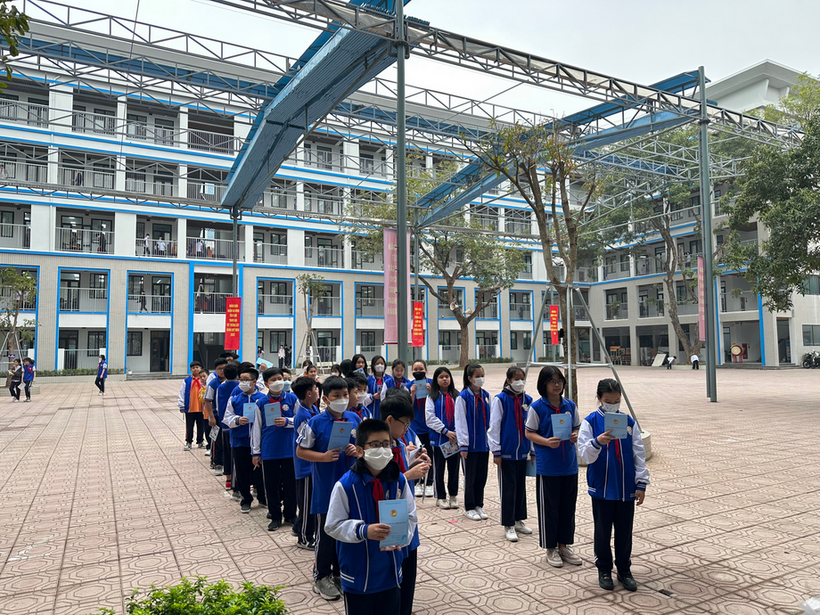 Đồng thời Ban giám hiệu nhà trường đã thông qua giáo viên chủ nhiệm gửi tin nhắn đến từng phụ huynh dặn dò các con học sinh cách ăn mặc cho phù hợp trong ngày khám bệnh. Cô Kim Ngân - cán bộ y tế của nhà trường phát sổ khám bệnh đến từng lớp và hướng dẫn các con cách ghi thông tin của mình thật chính xác.