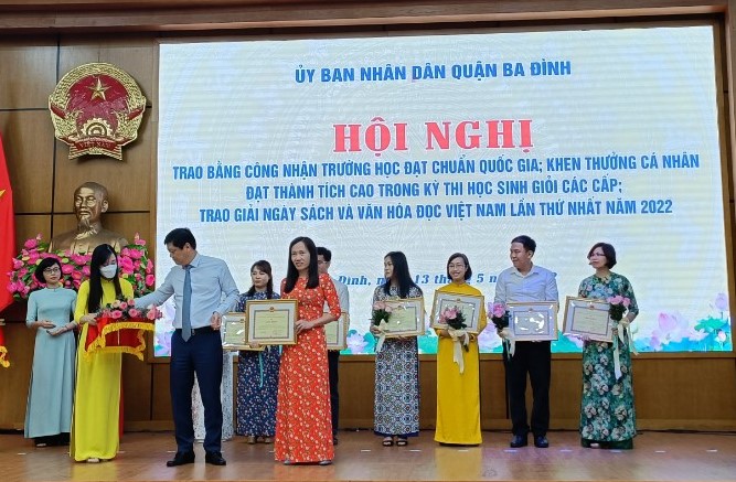 Sáng ngày 13/5/2022, UBND Quận Ba Đình tổ chức Hội nghị trao bằng công nhận trường chuẩn quốc gia; khen thưởng cá nhân đạt thành tích cao trong các kỳ thi học sinh giỏi; trao giải Ngày sách và văn hóa đọc Việt Nam lần thứ nhất năm 2022.