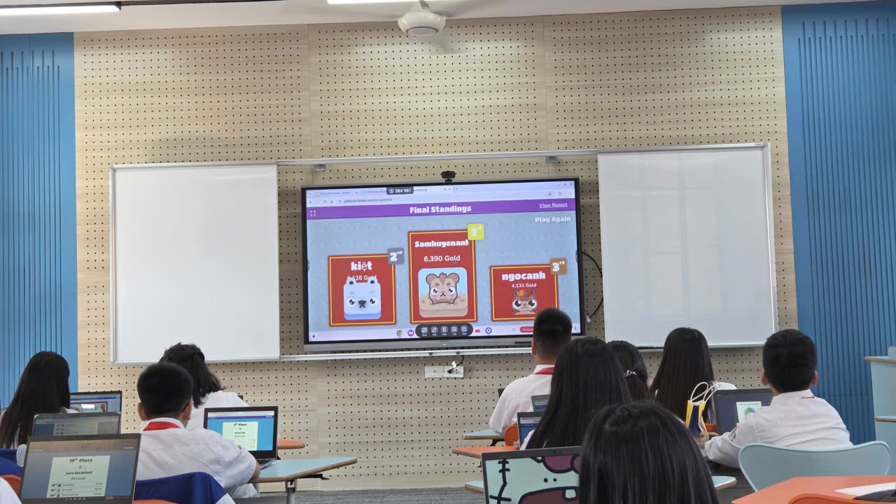 Không chỉ dừng lại ở trình bày lí thuyết, tiết học còn trở nên hấp dẫn hơn khi các nhóm khéo léo lồng ghép các chương trình trò chơi xen kẽ vào quá trình thuyết trình nhóm. Qua các trò chơi tương tác như Quizze, Kahoot hay Blocket…các bạn được ôn lại kiến thức và thi nhau xem tốc độ ai nhanh hơn.