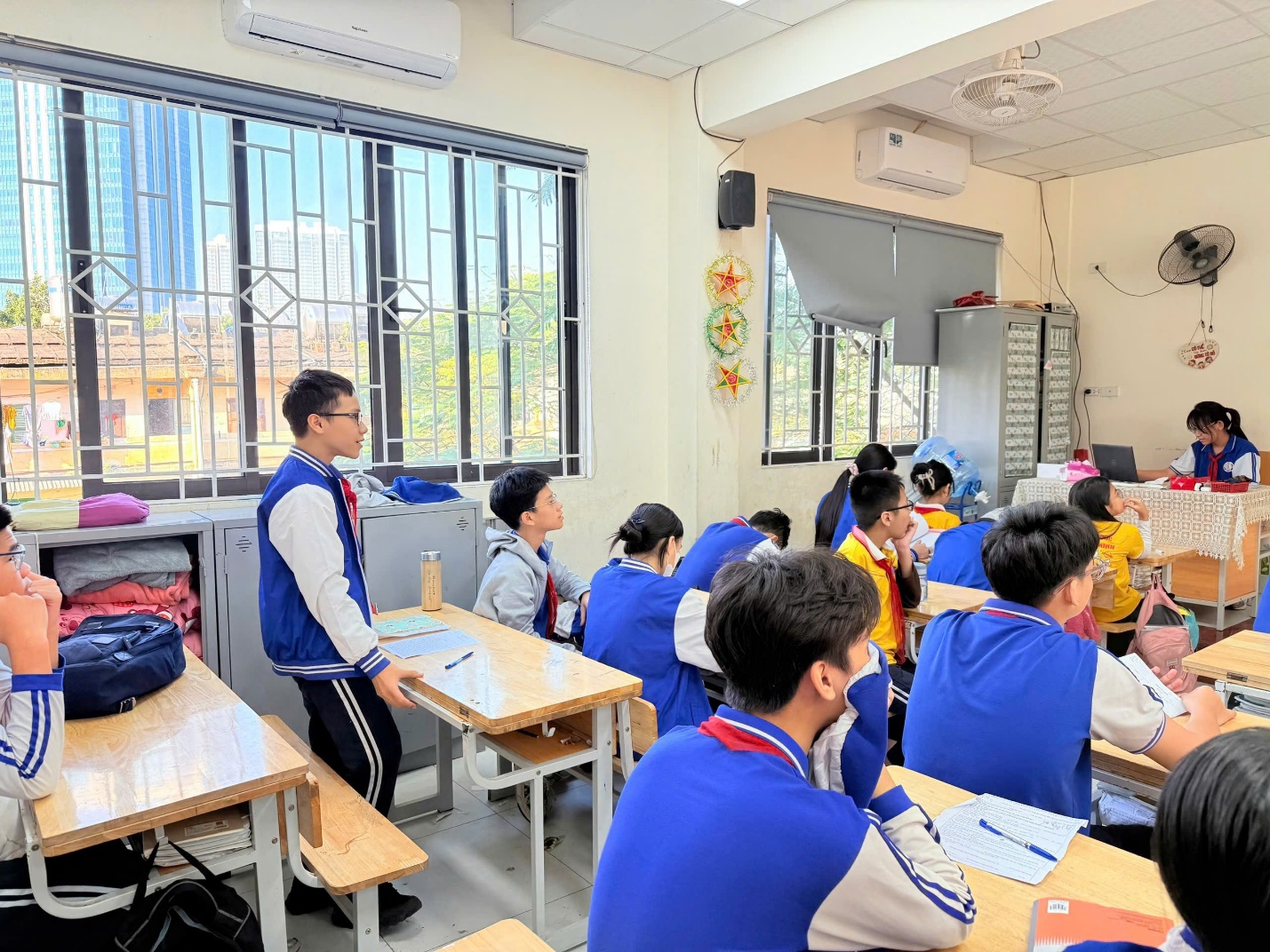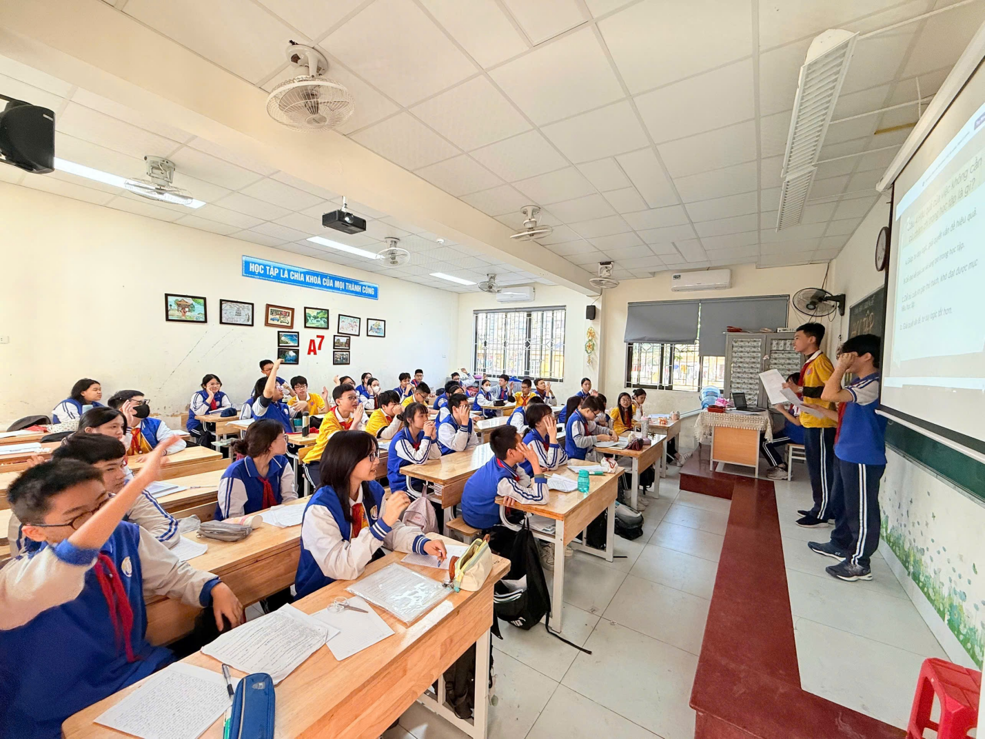 Dưới lớp, các bạn học sinh chăm chú theo dõi, tương tác, đặt câu hỏi và nêu ý kiến. Tất cả tạo nên một môi trường học tập dân chủ, hiện đại – nơi mỗi học sinh đều được khuyến khích thể hiện bản thân.