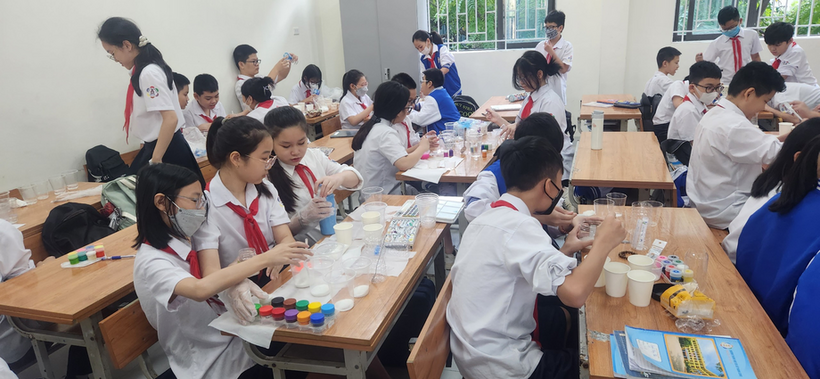 Để tham gia tiết thực hành, chúng tớ đã chủ động phân công nhau chuẩn bị: 1 cốc nhựa hoặc thuỷ tinh trong suốt, đường trắng, nước trắng, màu, thìa nhỏ, cốc giấy. Mỗi bạn xung phong nhận một nhiệm vụ rồi háo hức, hào hứng đón chờ giờ học.