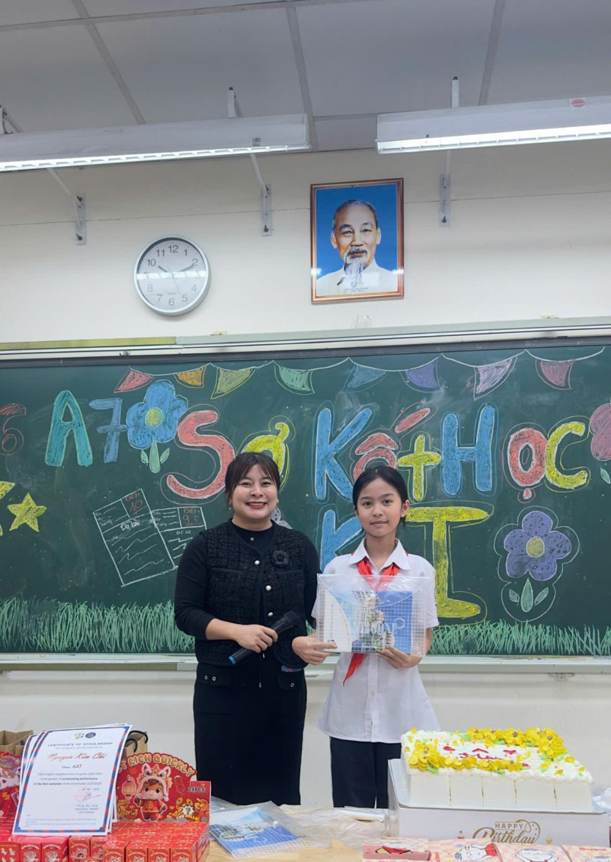 4 bạn học sinh lớp 6A7 nhận được học bổng của Trung tâm Tiếng Anh OEA