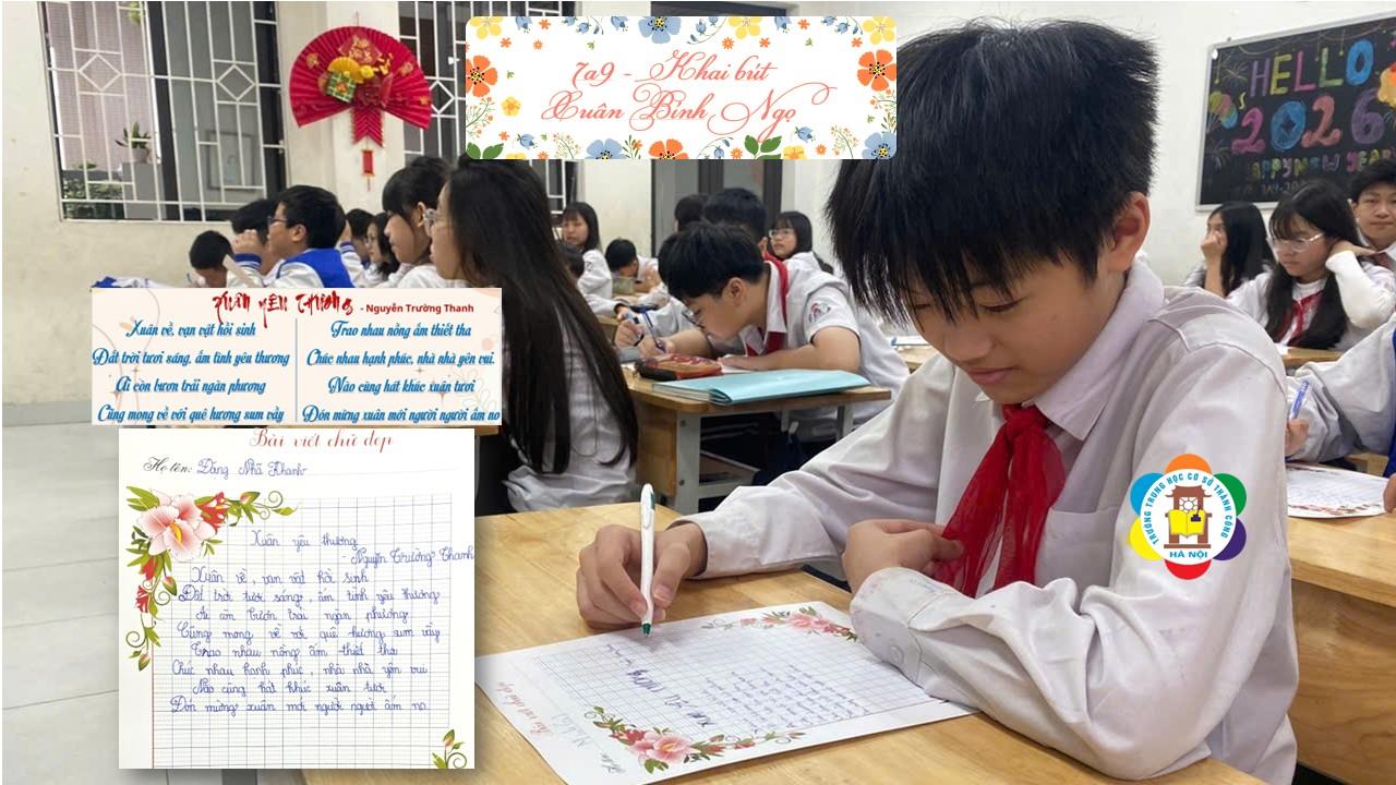 Cô và trò lớp 7A9 trường THCS Thành Công cùng nhau khai bút đầu xuân - gói trọn tâm tình trong từng nét chữ.