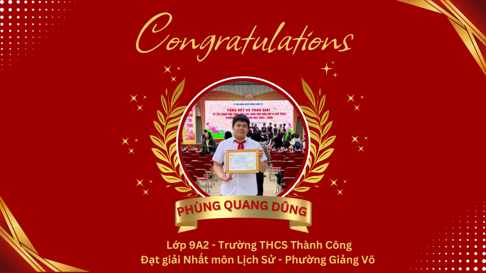 Dưới mái trường THCS Thành Công thân yêu, kỳ thi học sinh giỏi cấp phường Giảng Võ đã khép lại, để lại những dư âm đẹp và niềm tự hào lan tỏa trong lòng thầy cô, học sinh. Với tập thể lớp 9A2, đây thực sự là một mùa quả ngọt – thành quả xứng đáng cho những tháng ngày miệt mài nỗ lực.