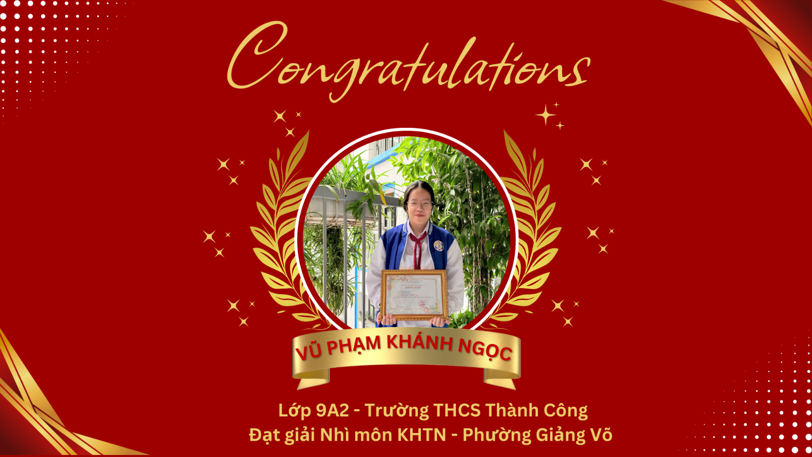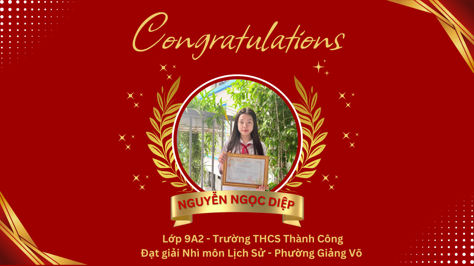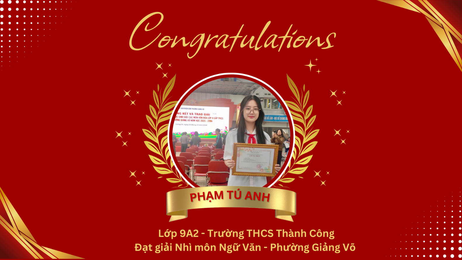 Xin gửi lời chúc tới các bạn tiếp tục bước vào kỳ thi cấp thành phố thật vững vàng, tự tin. Với những bạn chưa đạt kết quả như mong đợi, hãy coi đây là một trải nghiệm quý giá để trưởng thành hơn. Dưới mái trường THCS Thành Công, tập thể lớp 9A2 và cô giáo chủ nhiệm Phạm Thị Hồng sẽ luôn đồng hành, tin tưởng và ủng hộ các bạn.
