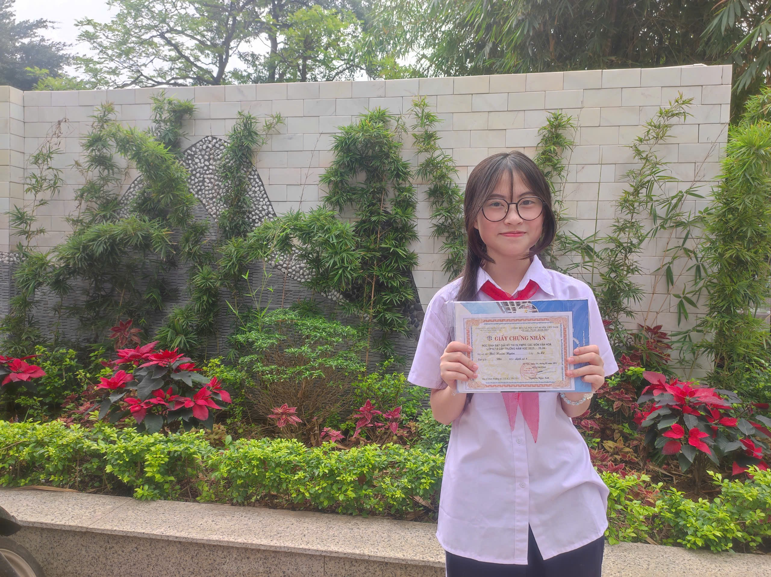 Bên cạnh đó, bạn Bùi Ngân Ngân đã khẳng định bản thân với giải Nhì môn Lịch sử. Giữa dòng chảy của thời gian, những sự kiện tưởng chừng khô khan đã được bạn tiếp cận bằng sự say mê và tinh thần tìm tòi. Không chỉ ghi nhớ, bạn còn biết cách phân tích, liên hệ và nhìn nhận vấn đề một cách sâu sắc. Chính điều đó đã giúp bài làm của bạn trở nên nổi bật và thuyết phục. Thành tích của Ngân Ngân như một lời khẳng định rằng Lịch sử không chỉ là những con số, mà còn là linh hồn của dân tộc, là bài học quý giá cho hiện tại và tương lai.