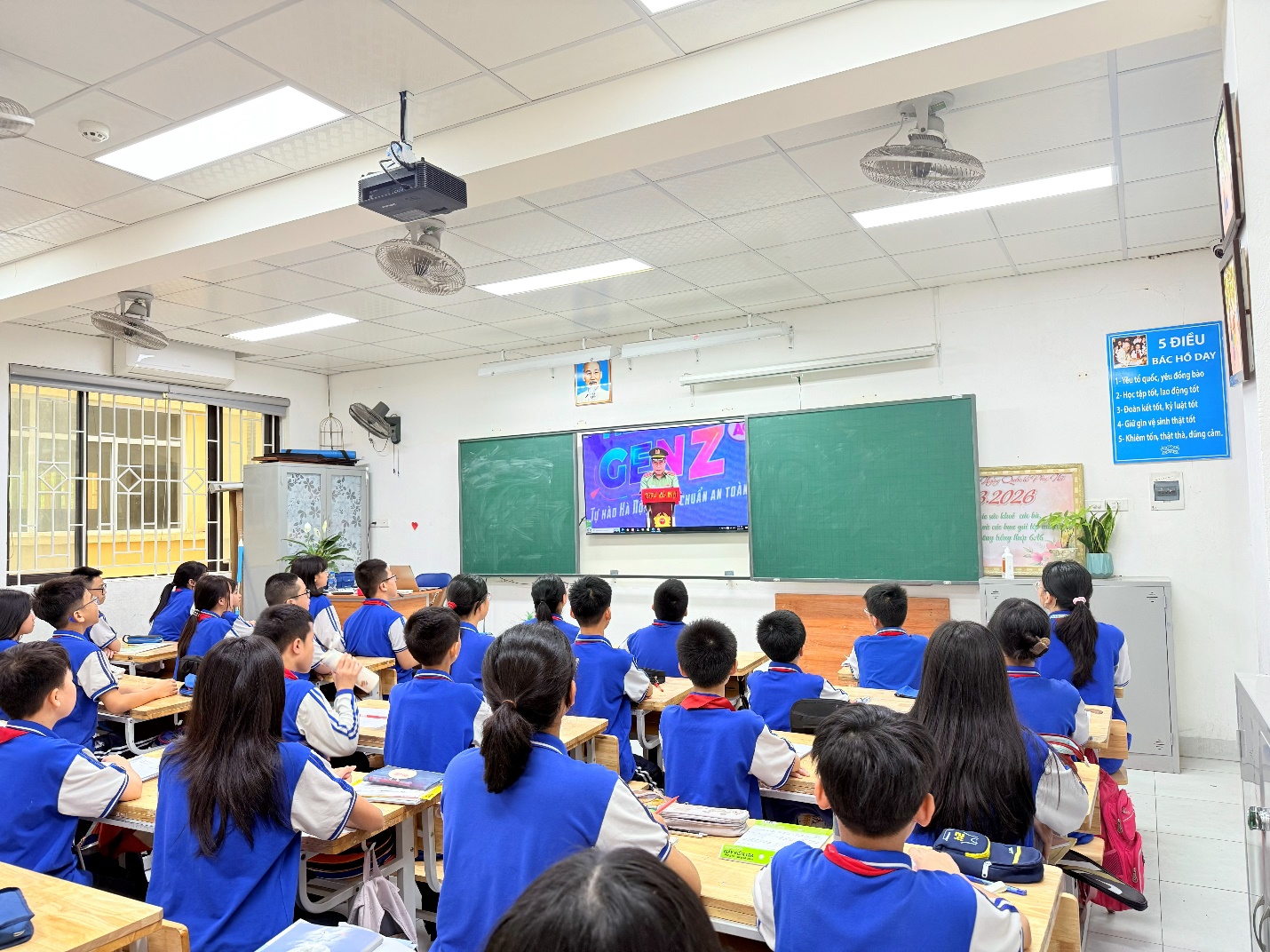 Học sinh lớp 6A6 tham gia theo dõi chương trình tuyên truyền pháp luật qua hình thức trực tuyến