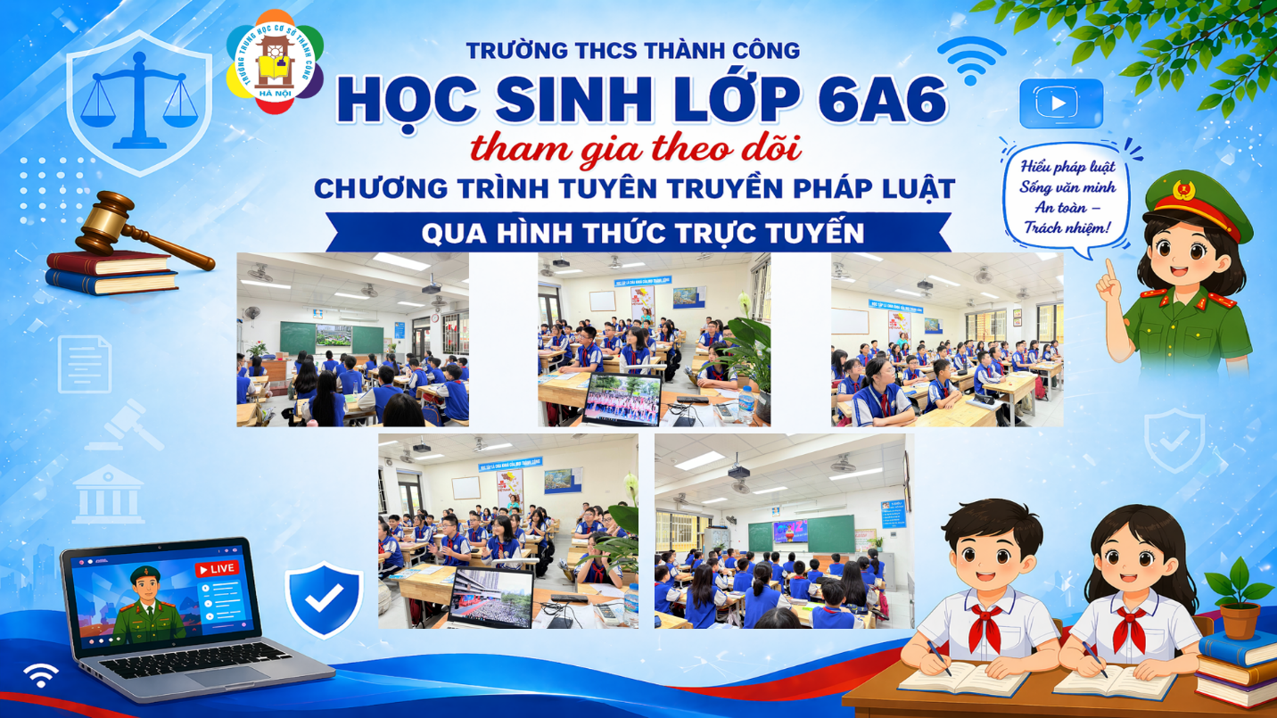 Sáng ngày 20/4/2026, học sinh lớp 6A6 – Trường THCS Thành Công đã tham gia theo dõi chương trình tuyên truyền, phổ biến giáo dục pháp luật do thành phố Hà Nội tổ chức thông qua hình thức livestream trực tuyến. Hoạt động mang đến nhiều kiến thức bổ ích, giúp học sinh nâng cao ý thức chấp hành pháp luật và kỹ năng bảo vệ bản thân trong cuộc sống.