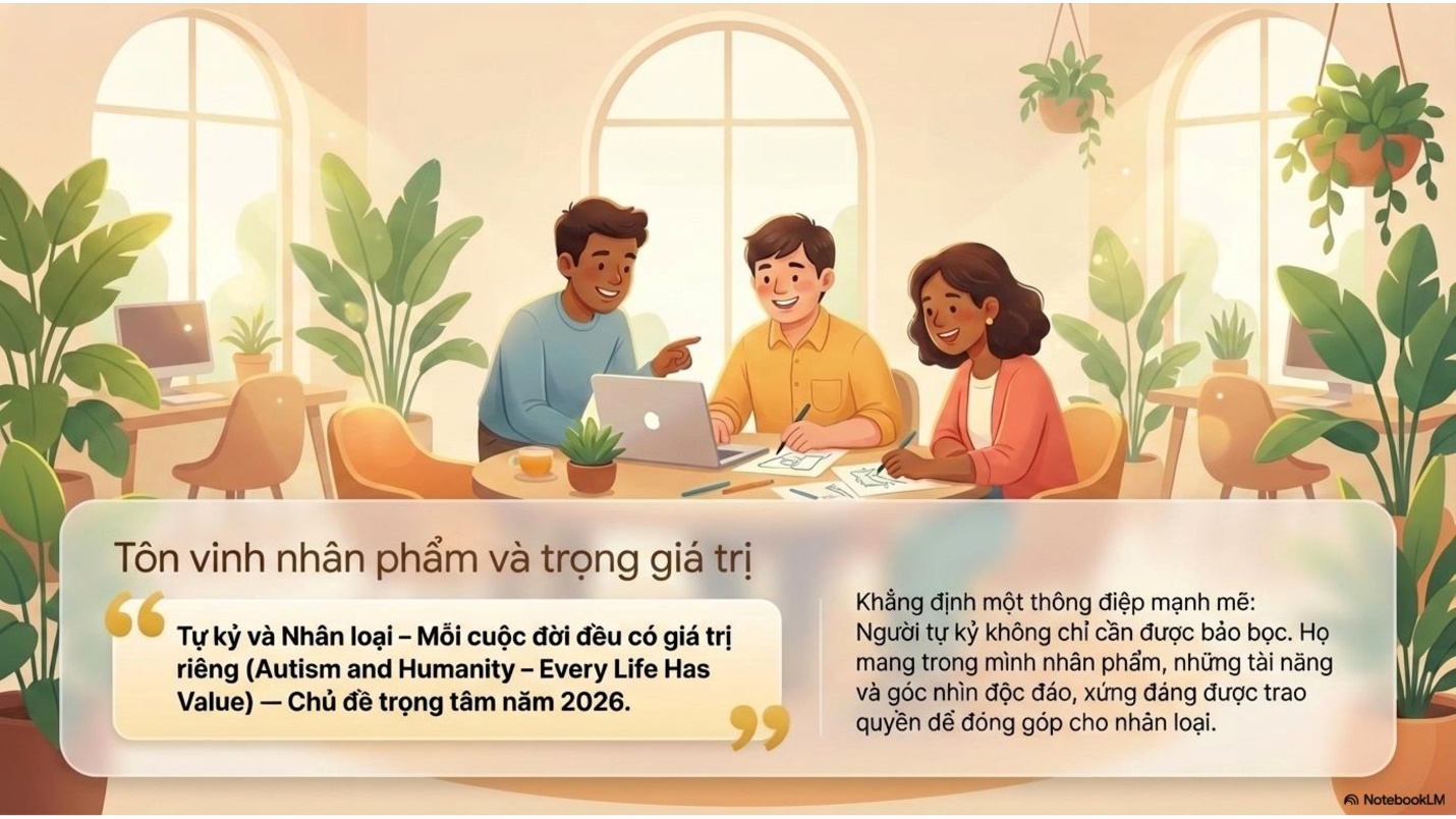 Ngày Thế giới nhận thức về Tự kỷ (02/04/2026) được Liên Hợp Quốc nhấn mạnh là "Tự kỷ và Nhân loại – Mỗi cuộc đời đều có giá trị riêng" (Autism and Humanity – Every Life Has Value). Trọng tâm năm 2026 hướng tới tôn vinh nhân phẩm và trao quyền chủ động cho người tự kỷ, chuyển từ chăm sóc thụ động sang hỗ trợ hòa nhập.