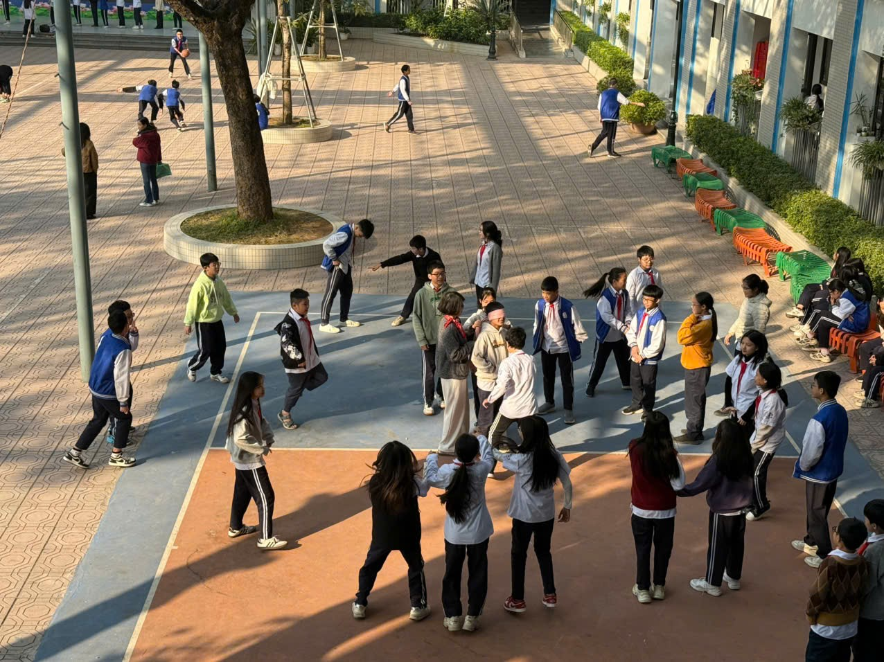 Khi sân trường biến thành lớp học đặc biệt – Nơi kiến thức đan xen cùng tiếng cười tuổi thơ.