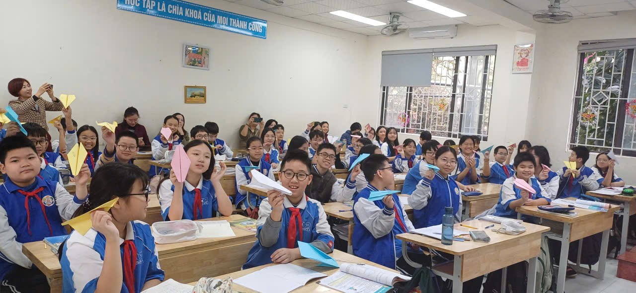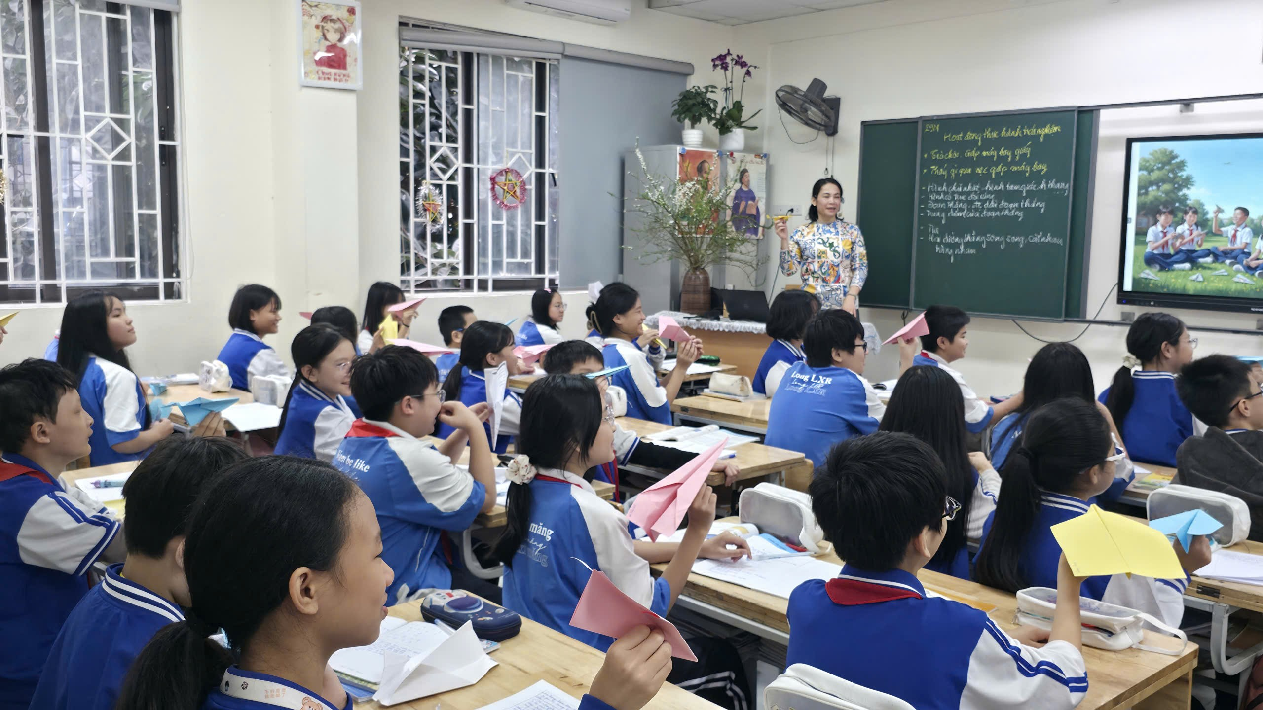 Khi những chiếc máy bay giấy được chúng em cùng nhau phóng lên không trung, đó không chỉ là trò chơi, mà còn là biểu tượng cho những kiến thức chúng em đã lĩnh hội được. Cô Lan nhắn nhủ rằng, mỗi nếp gấp cẩn thận chính là nền tảng vững chắc để những ước mơ của chúng em sau này có thể bay cao, bay xa như chính những chiếc máy bay này.