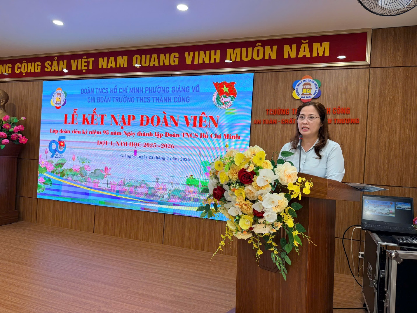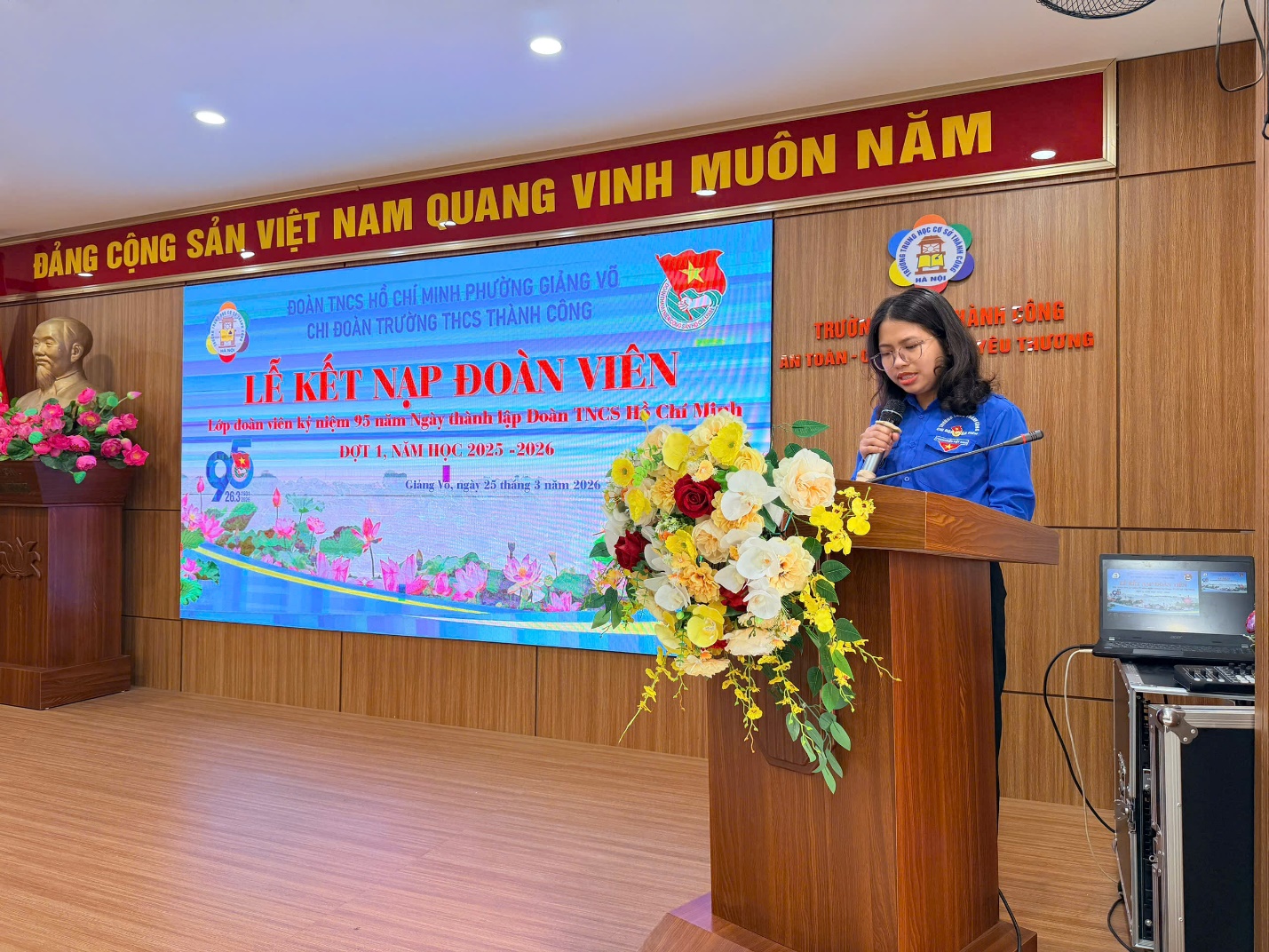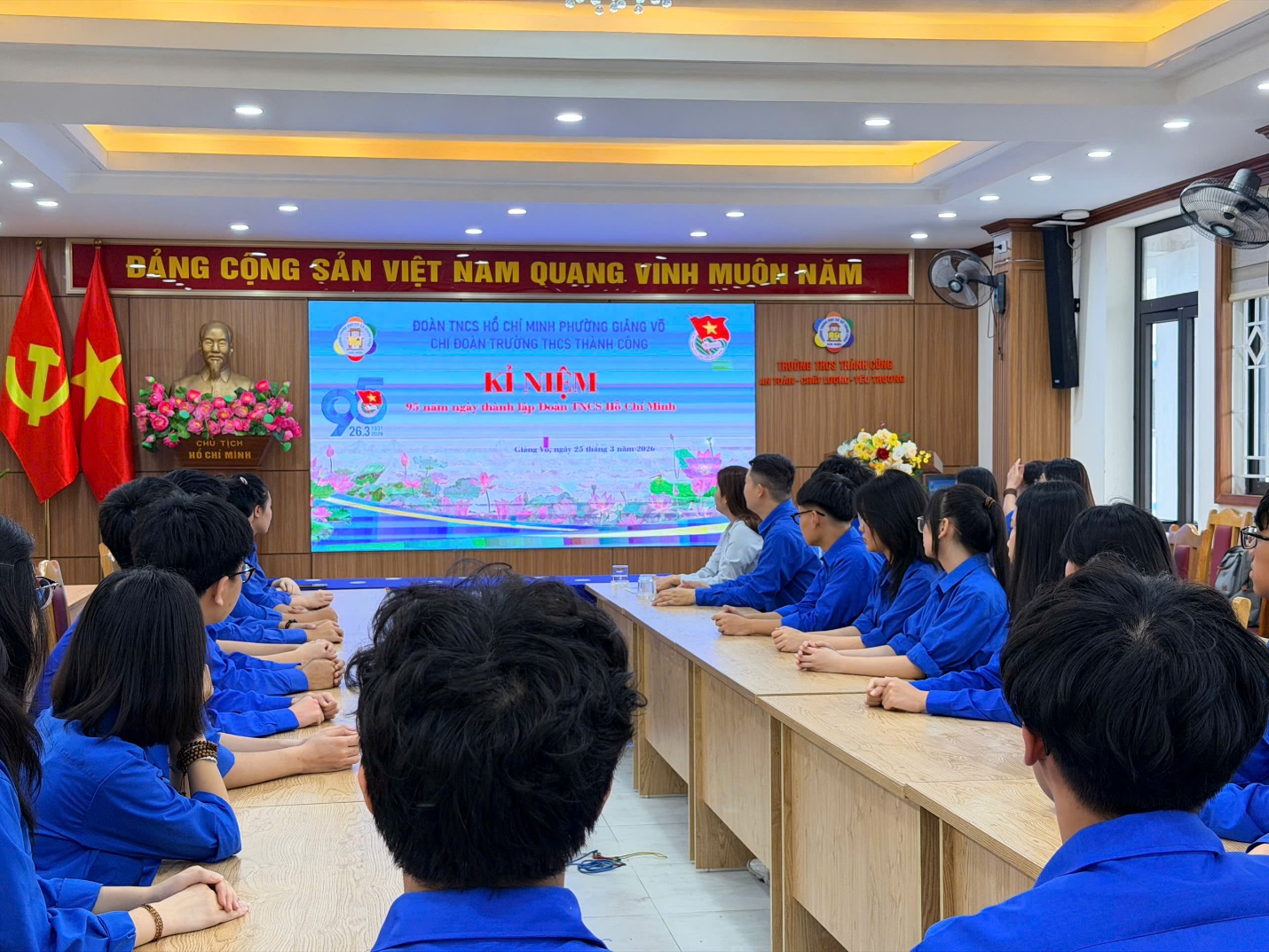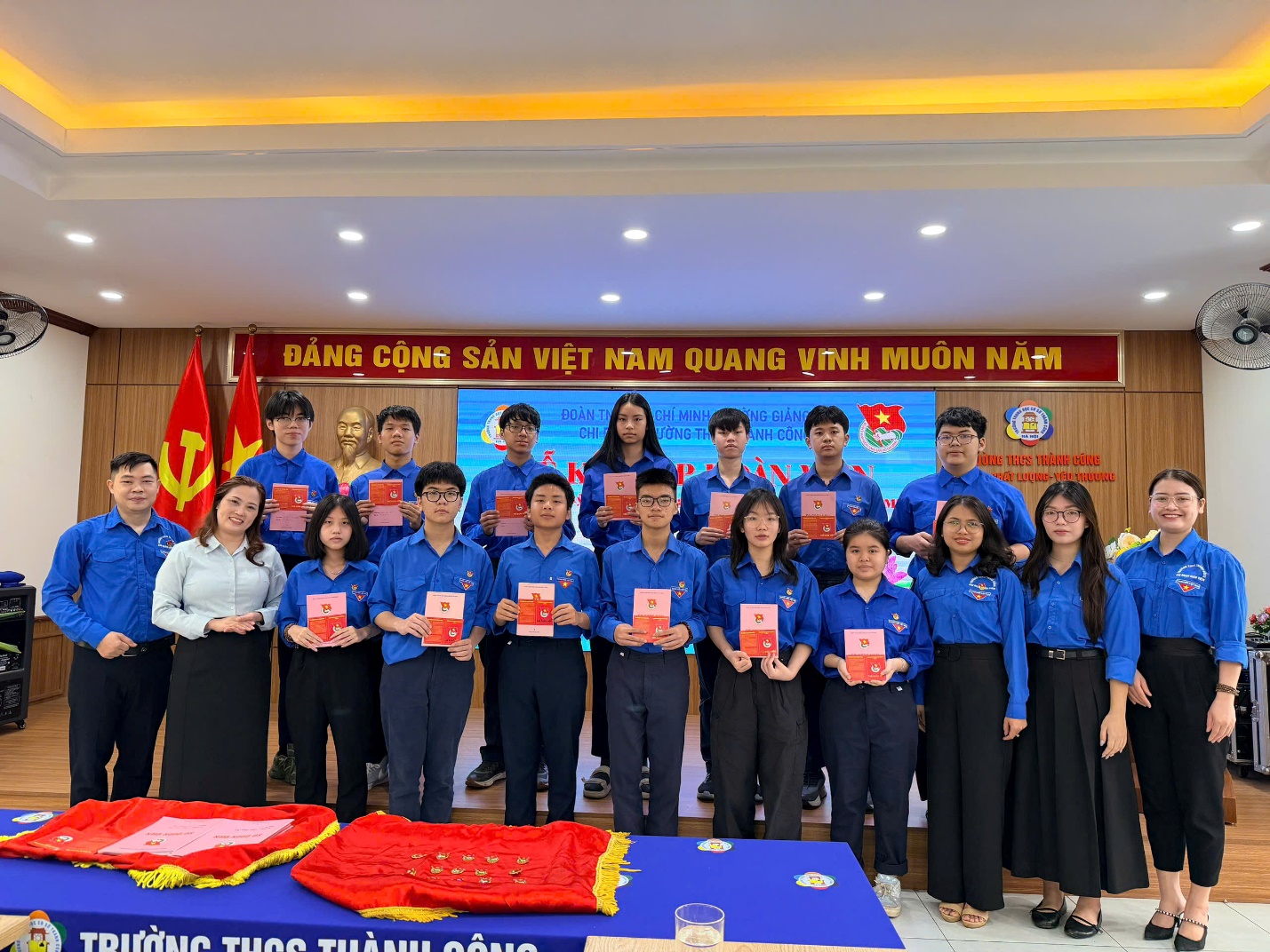 Ngày 25/3/2026, Trường THCS Thành Công đã tổ chức Lễ kết nạp Đoàn viên mới trong không khí trang nghiêm, ý nghĩa. Buổi lễ có sự tham dự của đồng chí Nguyễn Ngọc Huyền – Phó Hiệu trưởng nhà trường; đồng chí Phạm Thanh Tùng – Bí thư Chi đoàn; đồng chí Nguyễn Kim Hoài Nam – Tổng phụ trách Đội, cùng các thầy cô trong Ban Chấp hành Chi đoàn và 26 Đội viên ưu tú được kết nạp.