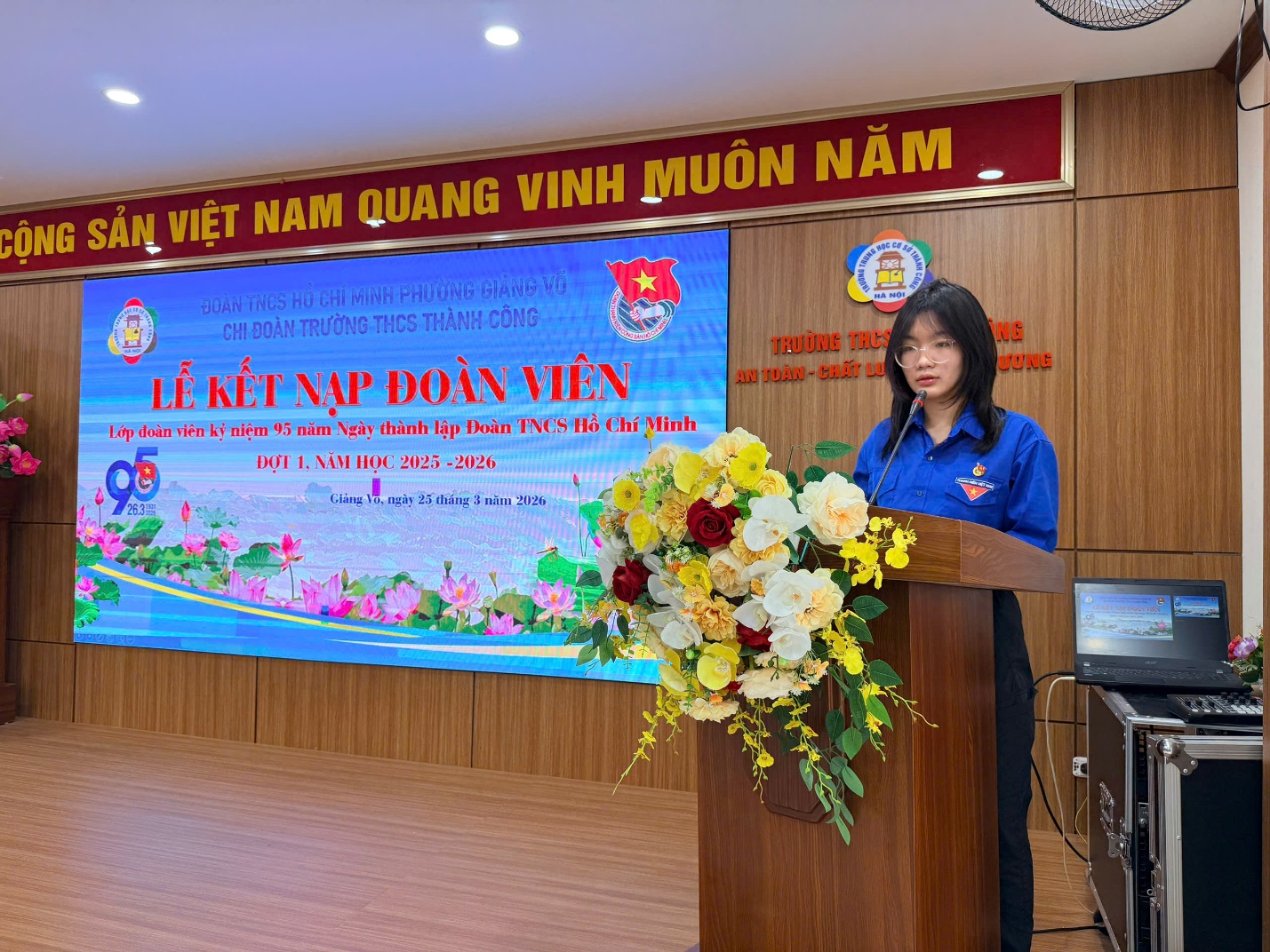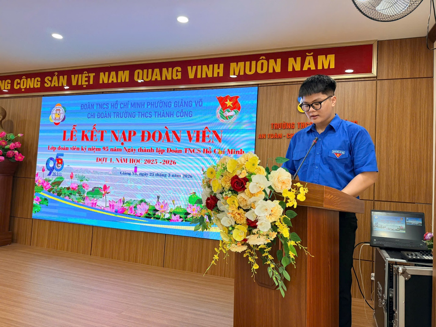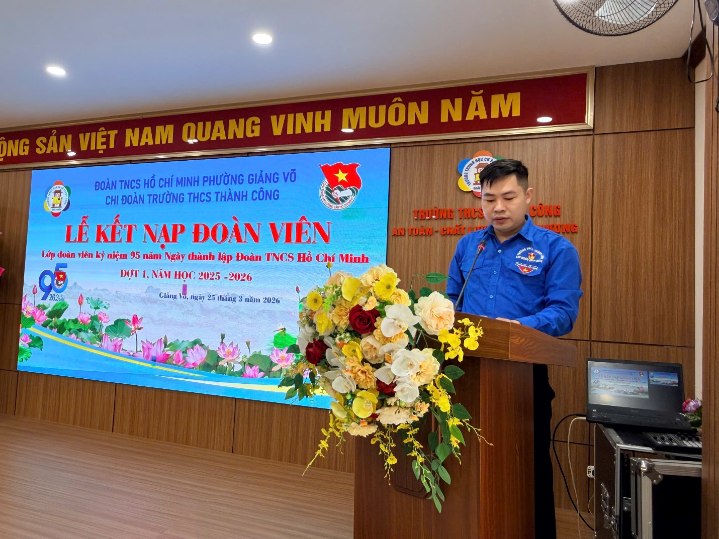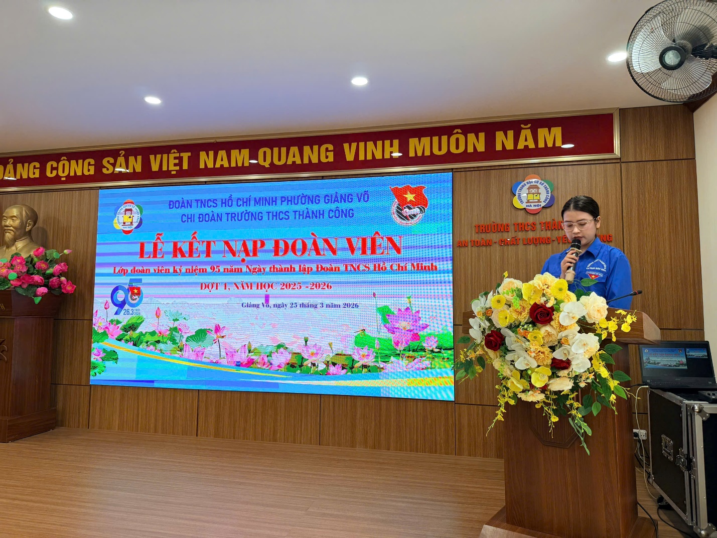 Ngày 25/3/2026, Trường THCS Thành Công đã tổ chức Lễ kết nạp Đoàn viên mới trong không khí trang nghiêm, ý nghĩa. Buổi lễ có sự tham dự của đồng chí Nguyễn Ngọc Huyền – Phó Hiệu trưởng nhà trường; đồng chí Phạm Thanh Tùng – Bí thư Chi đoàn; đồng chí Nguyễn Kim Hoài Nam – Tổng phụ trách Đội, cùng các thầy cô trong Ban Chấp hành Chi đoàn và 26 Đội viên ưu tú được kết nạp.