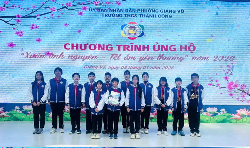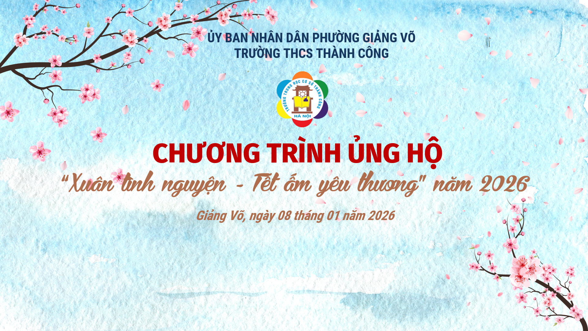 Với mong muốn chung tay sẻ chia, giúp đỡ các bạn thiếu nhi có hoàn cảnh khó khăn và các gia đình bị ảnh hưởng bởi thiên tai, bão lũ, Trường THCS Thành Công đã phát động phong trào “Xuân tình nguyện – Tết ấm yêu thương”. Đây là hoạt động mang ý nghĩa nhân văn sâu sắc, không chỉ góp phần hỗ trợ thiết thực cho những hoàn cảnh kém may mắn mà còn giúp học sinh hiểu rõ hơn về giá trị của sự sẻ chia, tinh thần tương thân tương ái và trách nhiệm với cộng đồng.