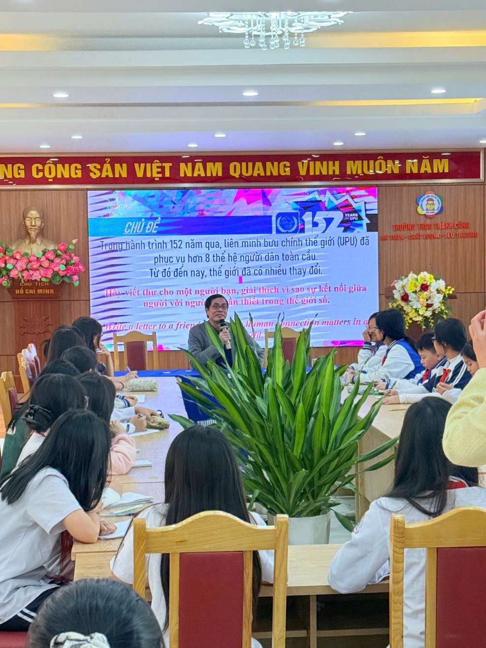Cuộc thi viết thư Quốc tế UPU từ lâu đã không còn xa lạ, nhưng để viết được một bức thư vừa đúng chủ đề, vừa chạm đến cảm xúc người đọc lại là một bài toán không hề dễ dàng. Chính vì thế, buổi chia sẻ kinh nghiệm cùng Nhà báo Trần Hữu Việt – một cây bút giàu kinh nghiệm và tâm huyết – đã trở thành cơ hội "vàng" để các bạn nhỏ trường THCS Thành Công học hỏi.