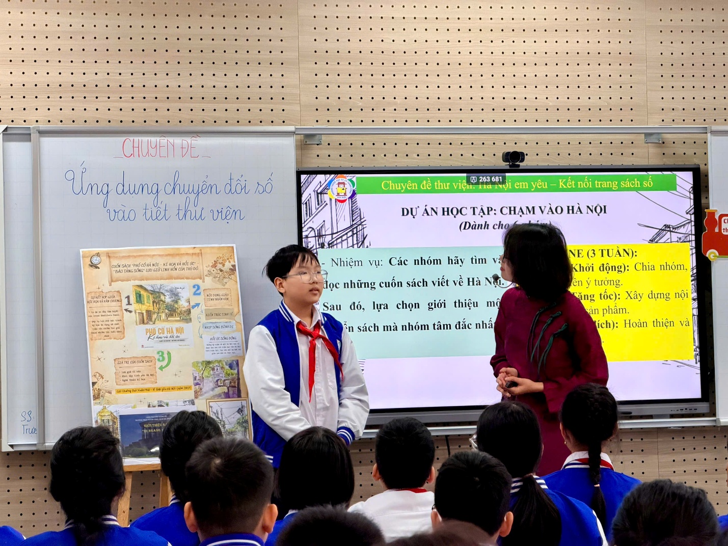 Tiết học được dẫn dắt qua các hoạt động hấp dẫn, giúp học sinh "chạm" vào Hà Nội bằng nhiều giác quan: