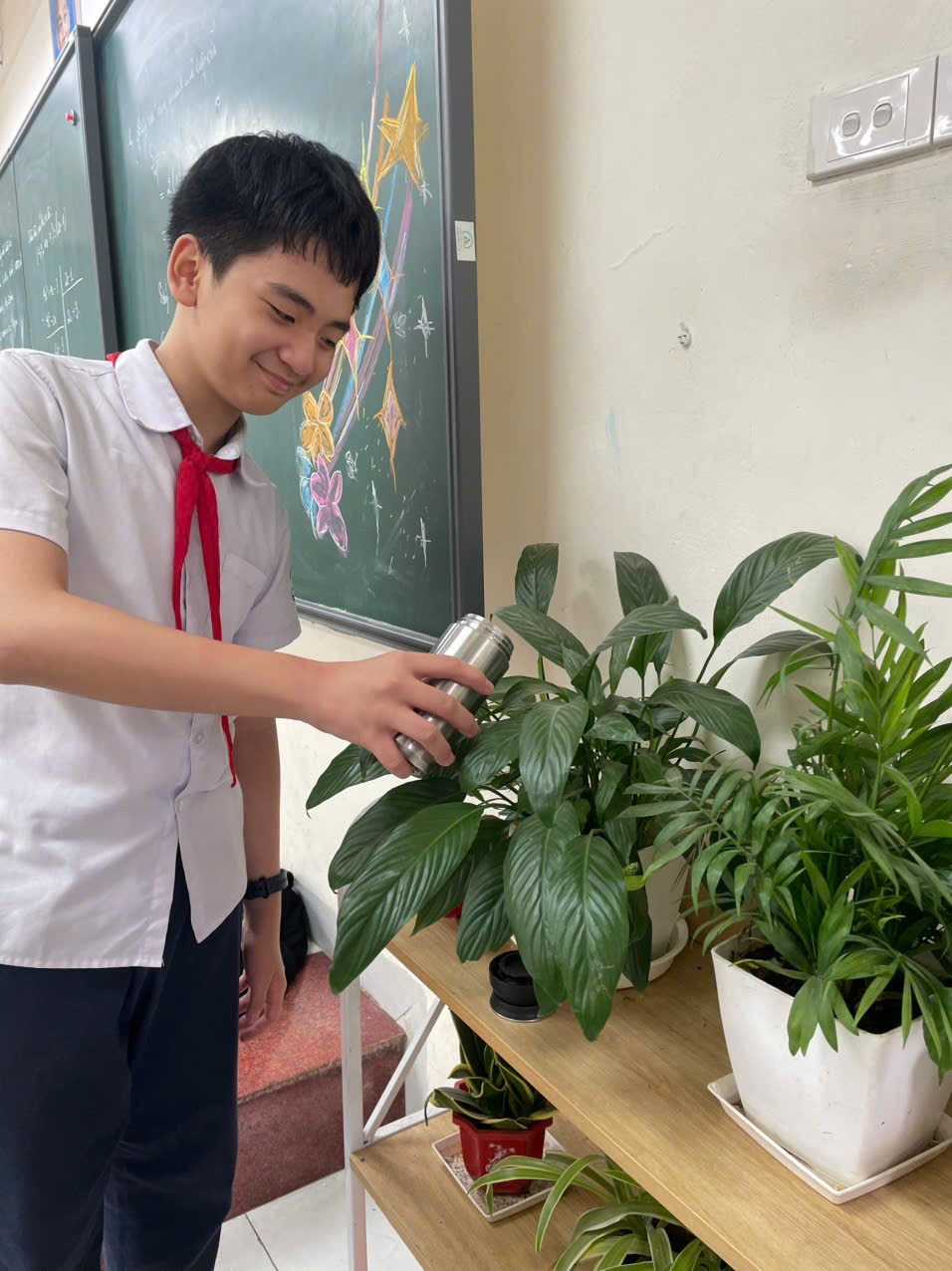 Dần dần, “góc xanh” không chỉ là nơi trang trí mà còn trở thành một phần quen thuộc của lớp học. Giờ ra chơi, các bạn thường đứng gần đó trò chuyện, ngắm cây và chia sẻ với nhau những câu chuyện nhỏ. Góc xanh như một người bạn thầm lặng, luôn đồng hành cùng các bạn trong mỗi ngày đến trường.