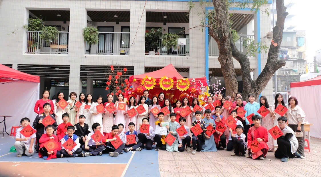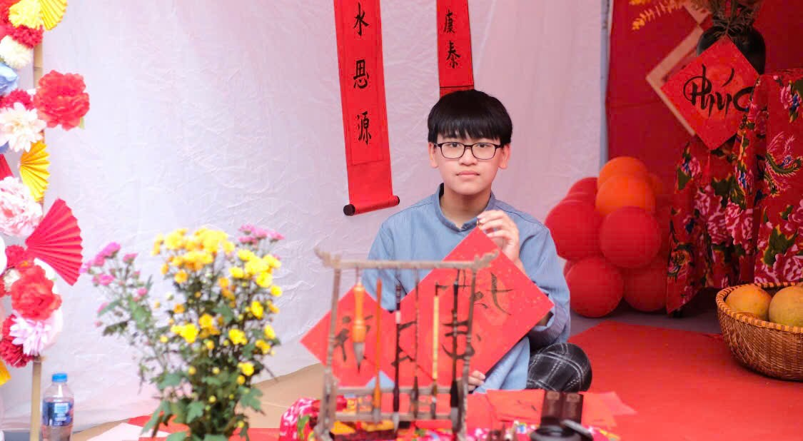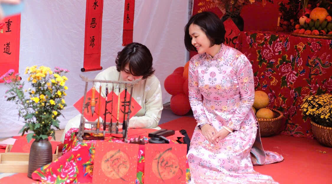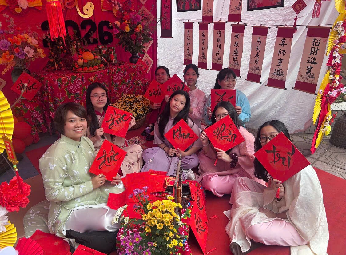 Cô Hiệu trưởng Ngọc Anh ghé thăm lớp chúng mình và trải nghiệm “Xin chữ thầy đồ” rất vui.