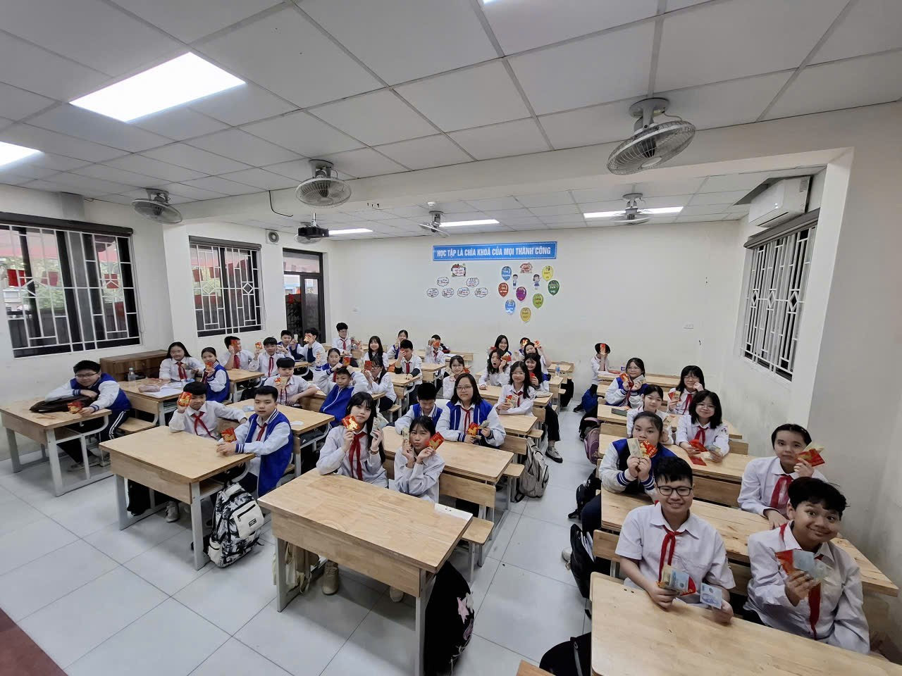 Không chỉ đơn thuần là những phong bao đỏ may mắn, mỗi chiếc lì xì được trao đi là một lời nhắn nhủ yêu thương của bố mẹ, thầy cô dành cho những học trò lớp 6 - những thành viên nhỏ tuổi nhất đã có một cái Tết đầu tiên dưới mái nhà Thành Công thân yêu.