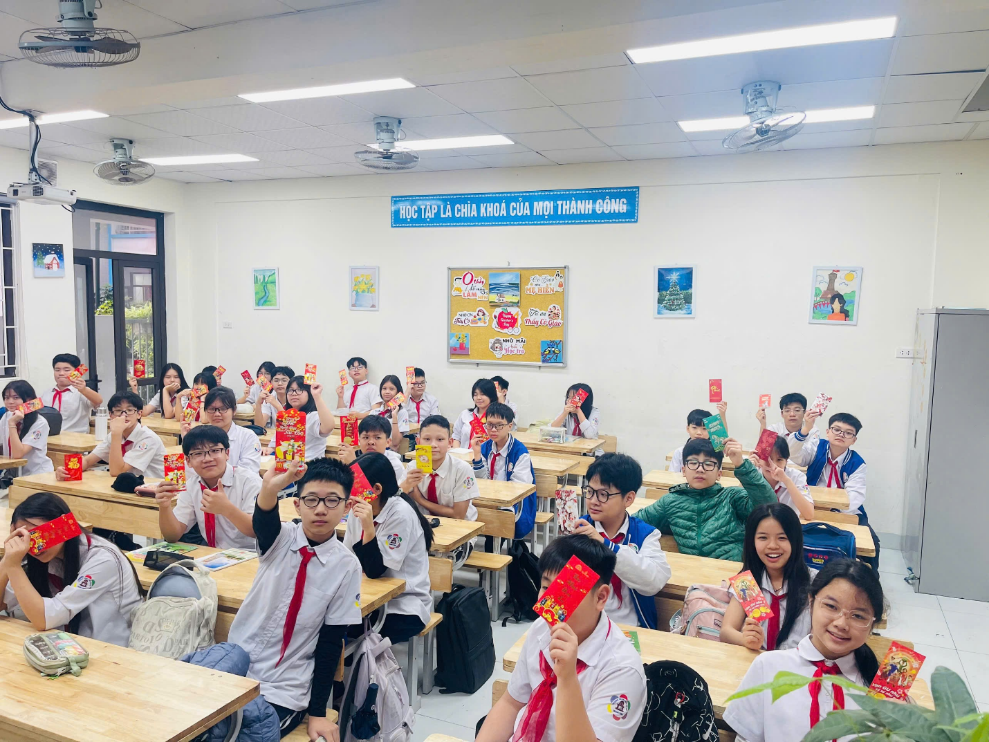 Trong buổi sinh hoạt đầu năm, cô giáo đã trao cho mỗi học sinh một phong bao lì xì đỏ thắm như lời chúc may mắn và động viên tinh thần.