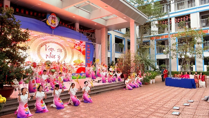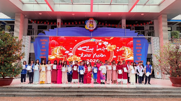 Bên cạnh đó, sau Tết, nhà trường cũng tổ chức hoạt động tập thể đầu xuân tại sân trường nhằm tạo không khí phấn khởi cho học sinh. Chúng em được nhận những lời chúc tốt đẹp, được xem những tiết mục văn nghệ mừng xuân mới và còn được tham gia Hội thi Khai bút đầu xuân. Những cơ hội học tập mới, những điều kiện thuận lợi học hành được trao cho chúng em như món quà đầu năm may mắn.