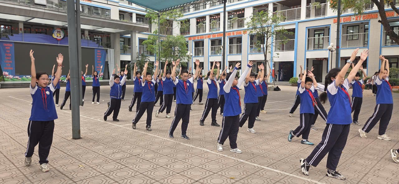 Mỗi tiết Thể dục của lớp 6A luôn bắt đầu thật sôi nổi với bài thể dục liên hoàn 30 động tác. Không chỉ giúp cơ thể dẻo dai, khỏe mạnh, những phút vận động này còn mang đến cho chúng em niềm vui, sự hứng khởi và tinh thần sẵn sàng chinh phục một ngày học tập hiệu quả.
