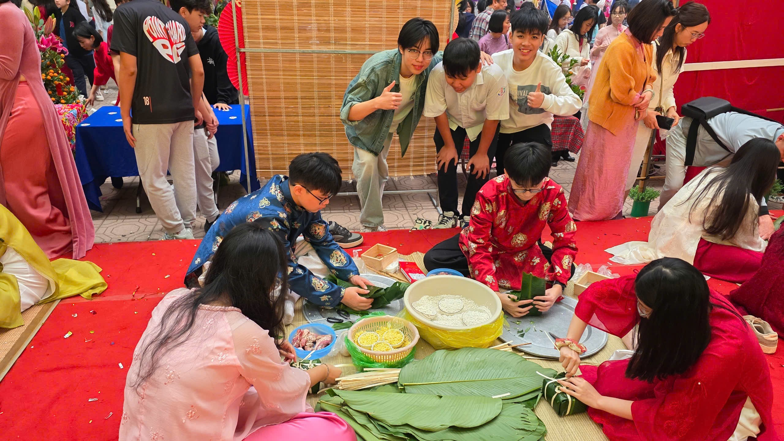 Có những bạn nam vốn nghịch ngợm là thế nay bỗng tỉ mẩn lạ thường. Có những bạn nữ thường ngày cá tính nay lại khéo léo dịu dàng bên mâm gạo, đỗ. Chúng mình không chỉ đang thi gói bánh mà đang cùng nhau viết tiếp những dòng nhật ký cuối cùng của tuổi học trò nơi mái trường Thành Công thân yêu.