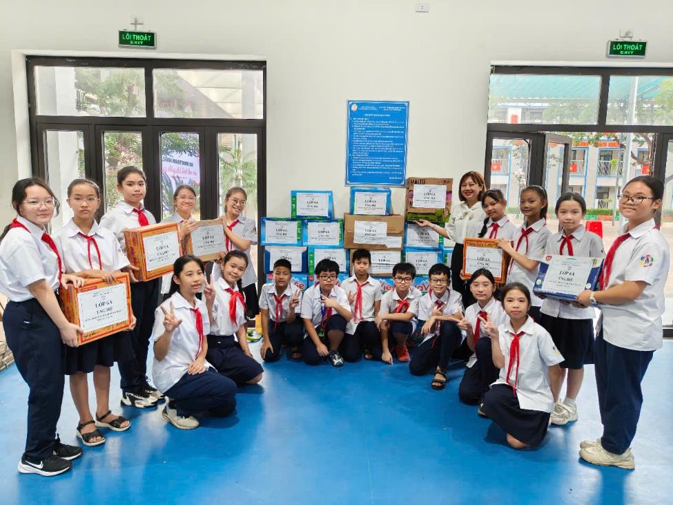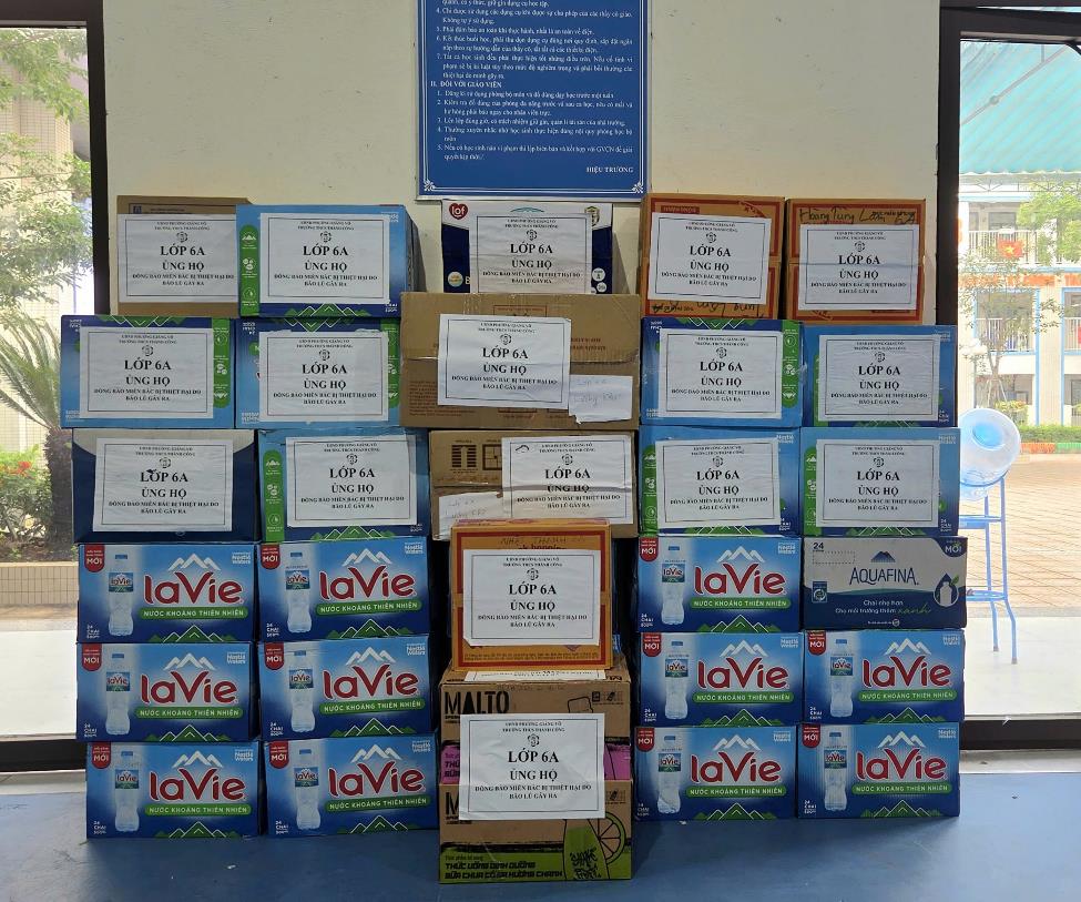 Trong lớp, chúng mình cùng cô giáo chủ nhiệm Lã Minh Phương cẩn thận đóng gói từng quyển vở, quyển sách, chiếc bút, và cả những gói mì, hộp sữa, … Từng món đồ tuy nhỏ, nhưng chứa đựng biết bao tình cảm và mong muốn được sẻ chia.