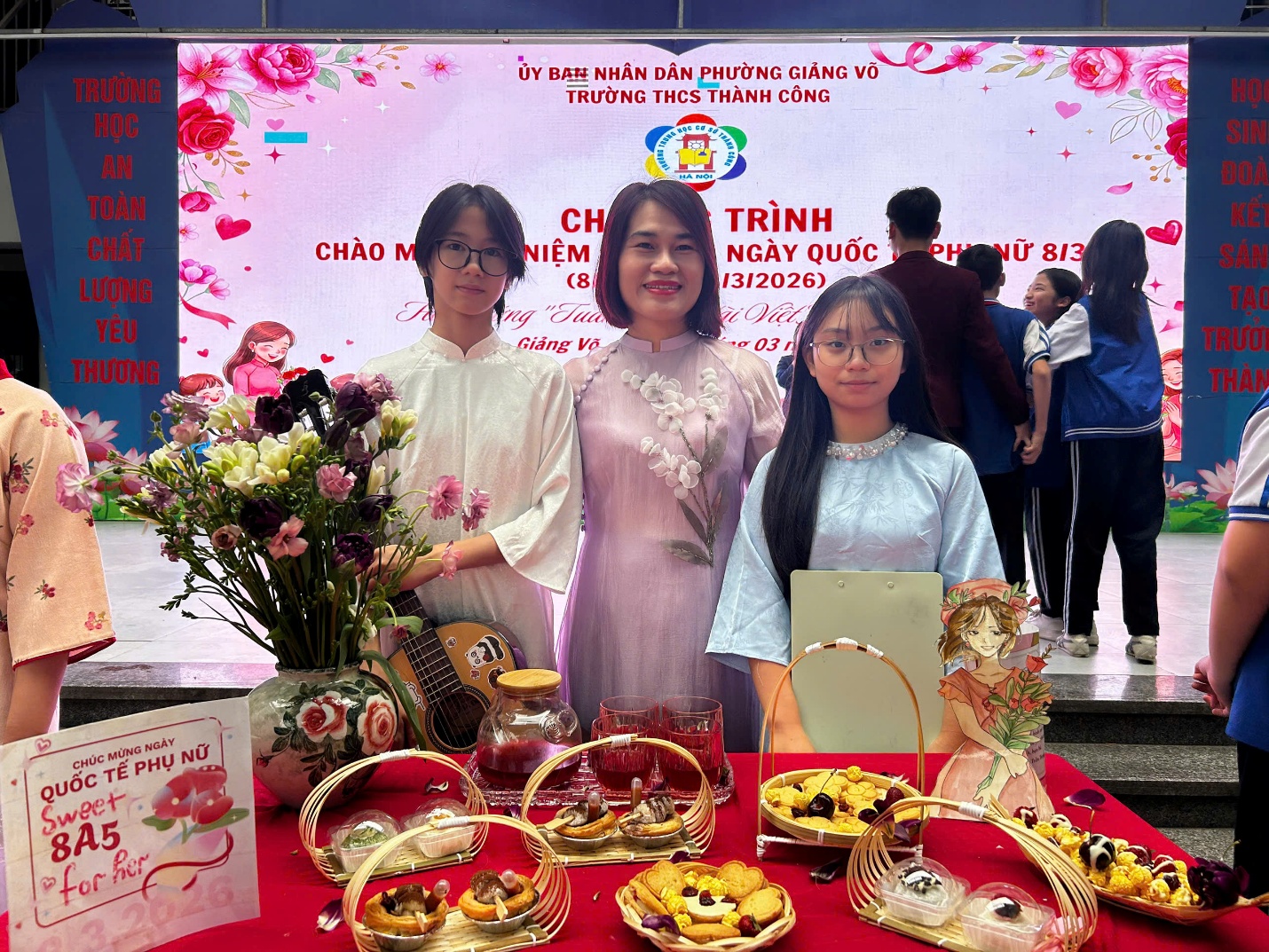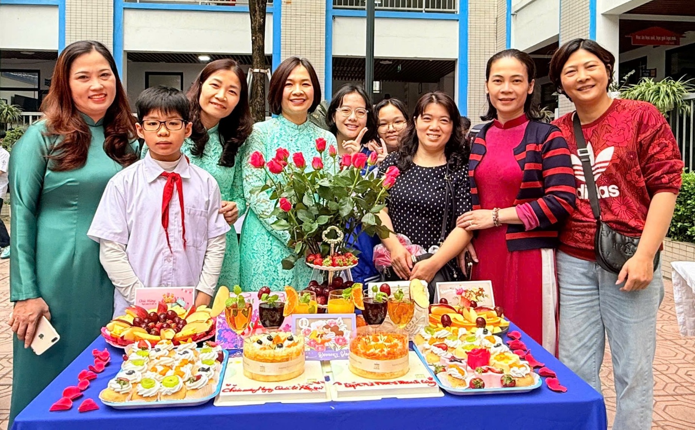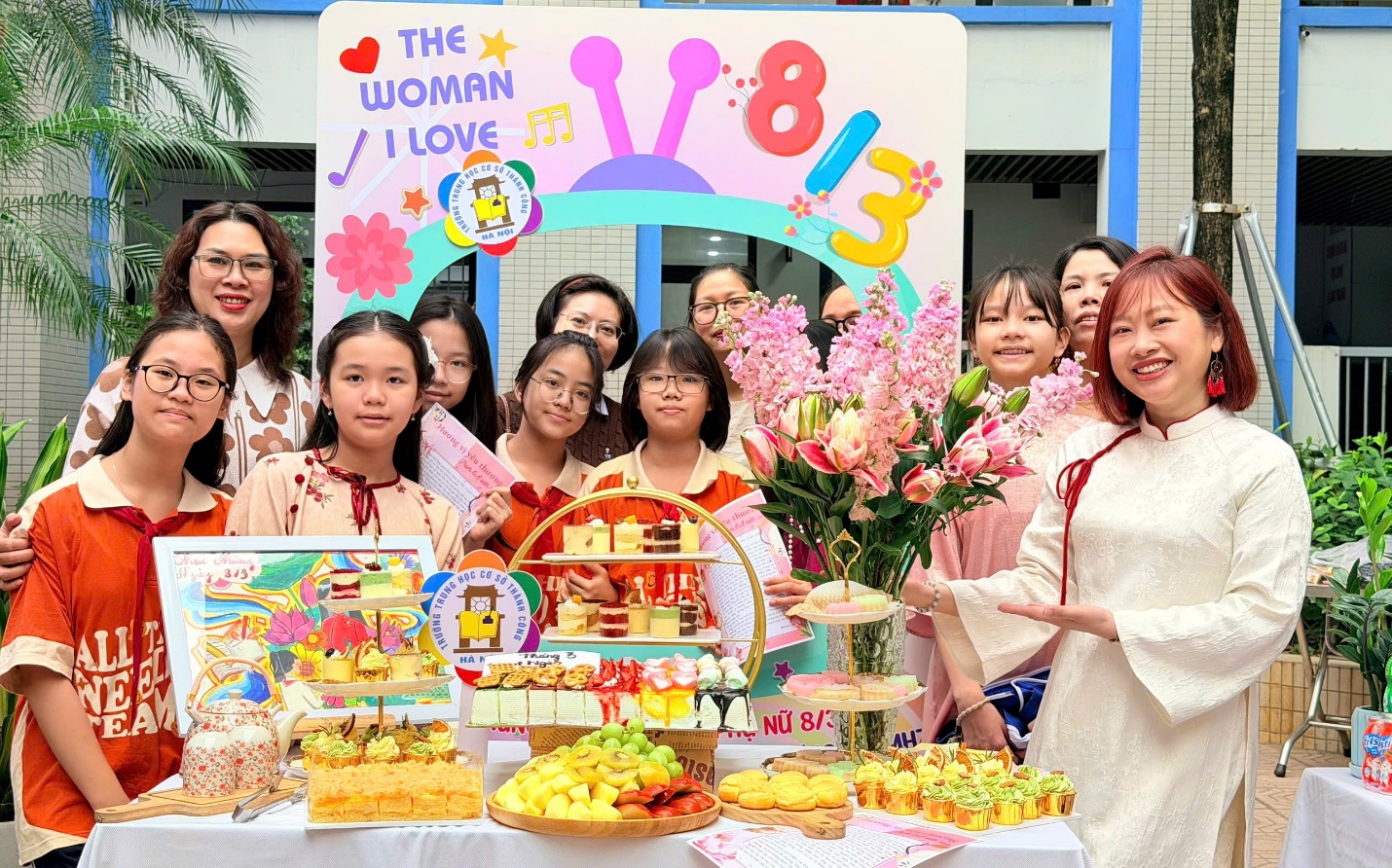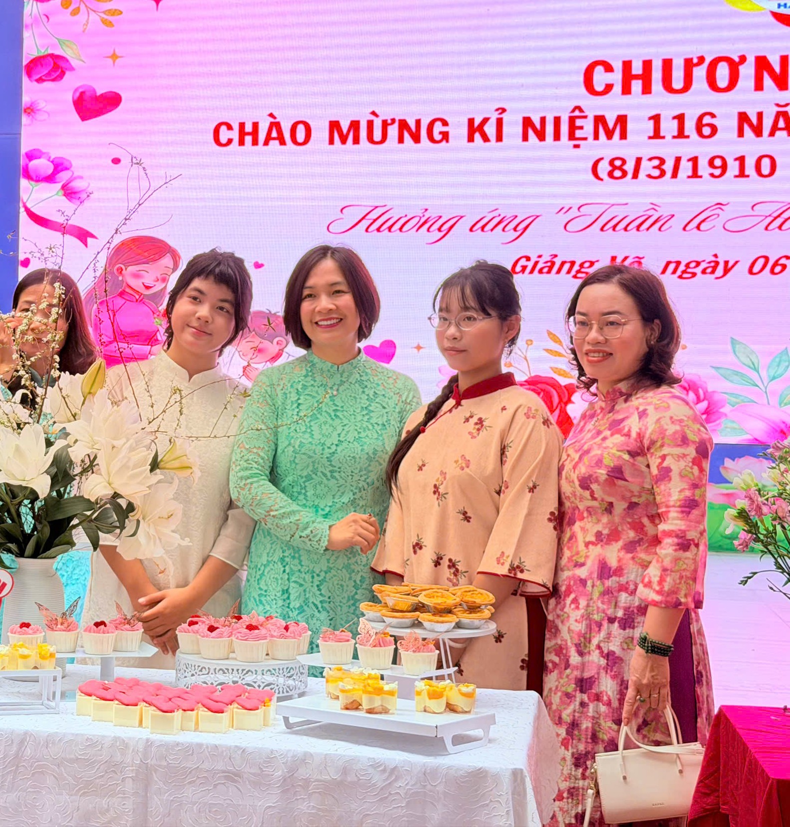 Tháng 3 về, nắng xuân dịu dàng trải khắp sân trường, Trường THCS Thành Công như khoác lên mình một sắc màu tươi mới. Sân khấu được trang trí rực rỡ, các lớp học tươi tắn với những dải băng, sắc hoa và biểu ngữ chào mừng Ngày Quốc tế Phụ nữ 8/3. Trong không gian ấy, hình ảnh các cô giáo duyên dáng trong tà áo dài mềm mại, các bà mẹ học sinh thân thiện và những nữ sinh rạng rỡ trong đồng phục chỉnh tề đã tạo nên một bức tranh thật ấm áp, đầy cảm xúc của ngày hội tôn vinh phụ nữ.