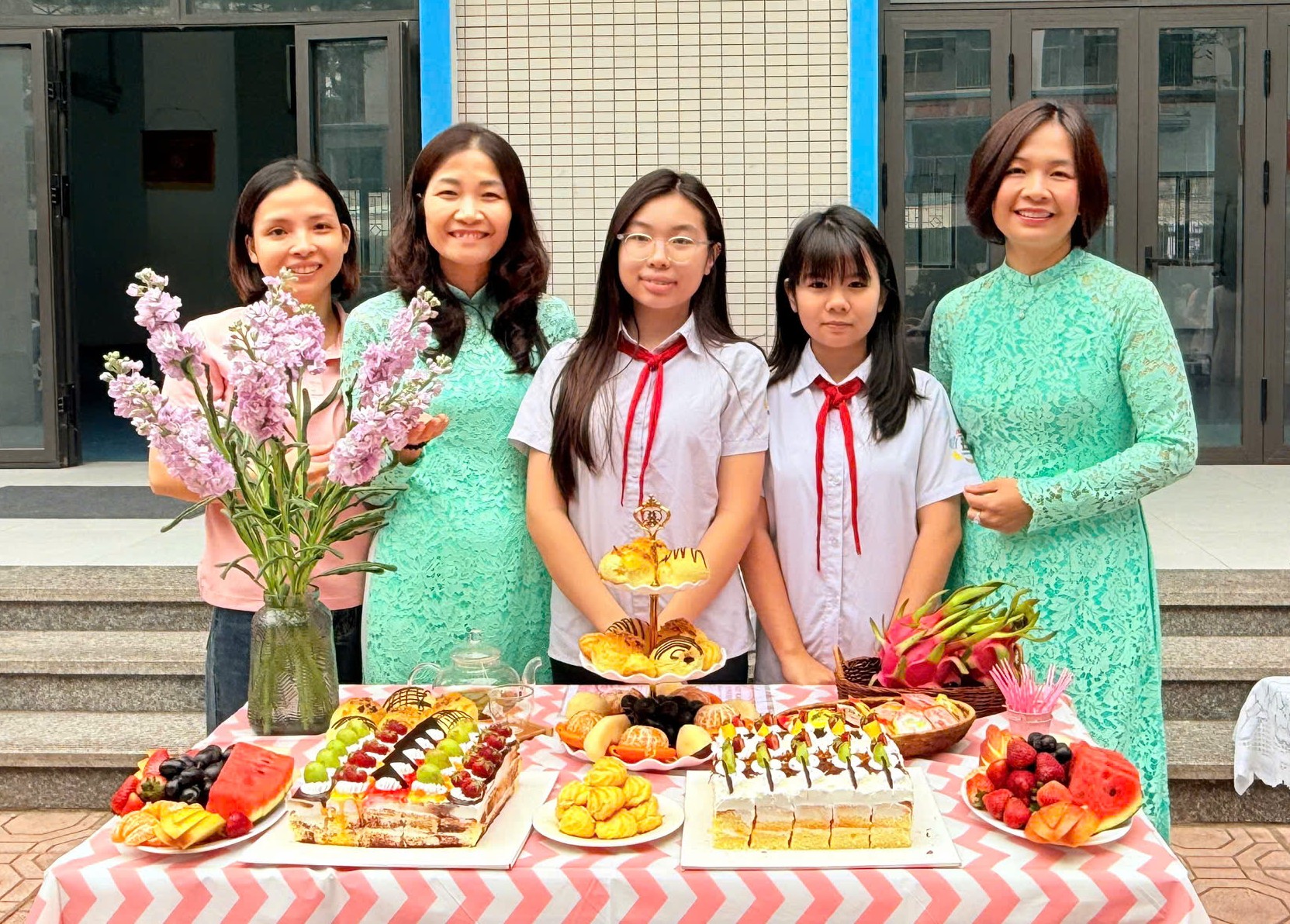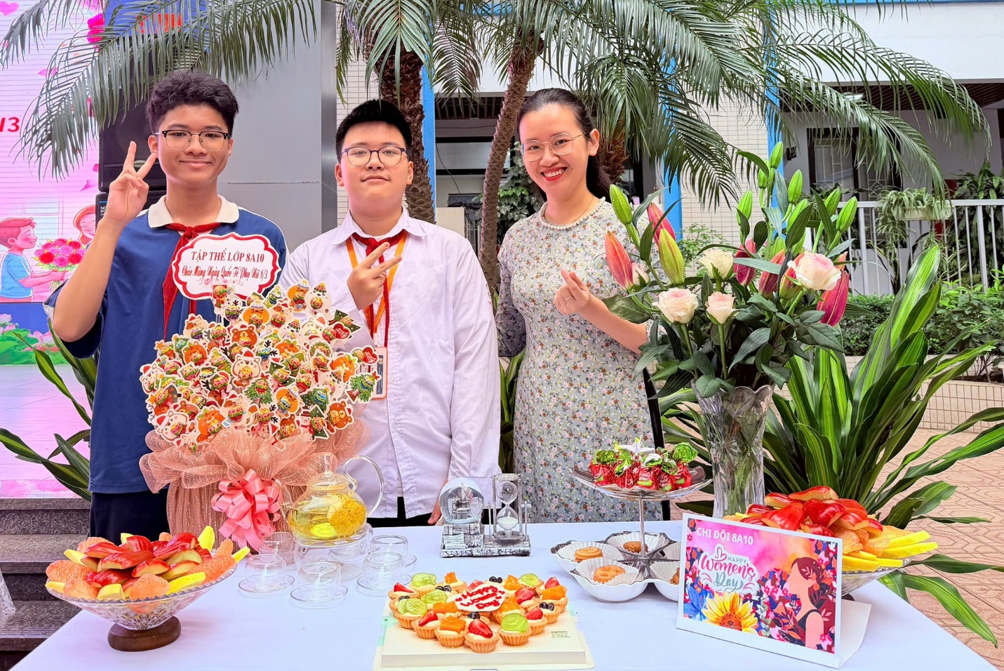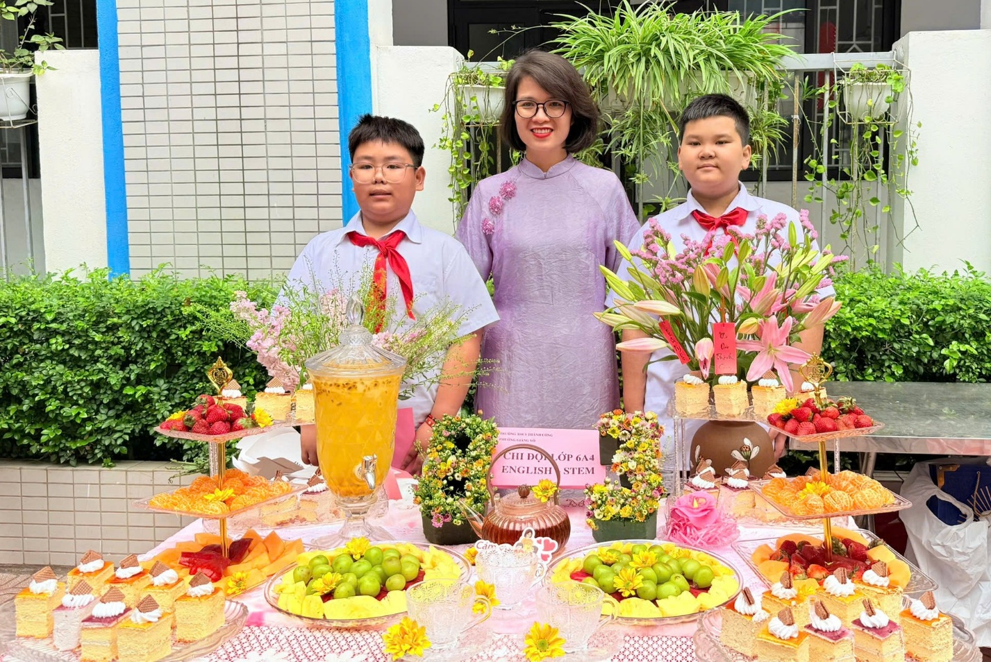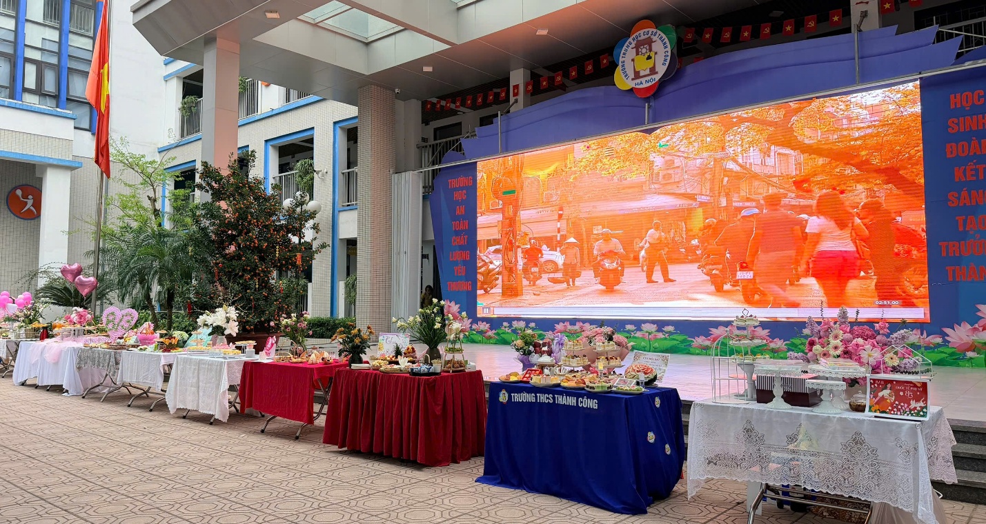 Điểm nhấn nổi bật của chương trình là phần thi trang trí “Bàn tiệc ngọt” dành cho học sinh các khối 6, 7 và 8. Chỉ trong thời gian ngắn, những chiếc bàn nhỏ trên sân trường đã được biến thành những “góc nghệ thuật” đầy màu sắc với bánh ngọt, trái cây, kẹo, hoa tươi và những tấm thiệp xinh xắn. Mỗi bàn tiệc là một ý tưởng sáng tạo riêng, thể hiện sự khéo léo, tinh tế và khả năng phối hợp nhịp nhàng của các tập thể lớp.