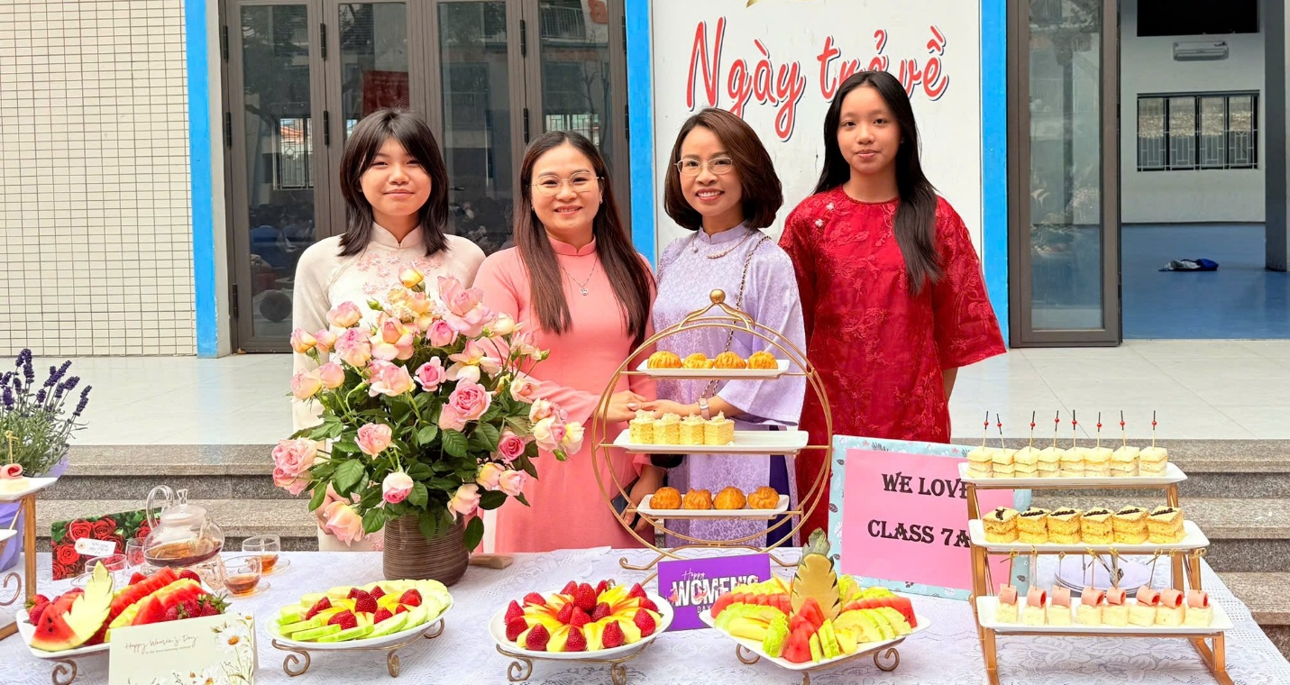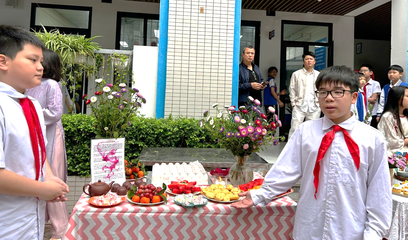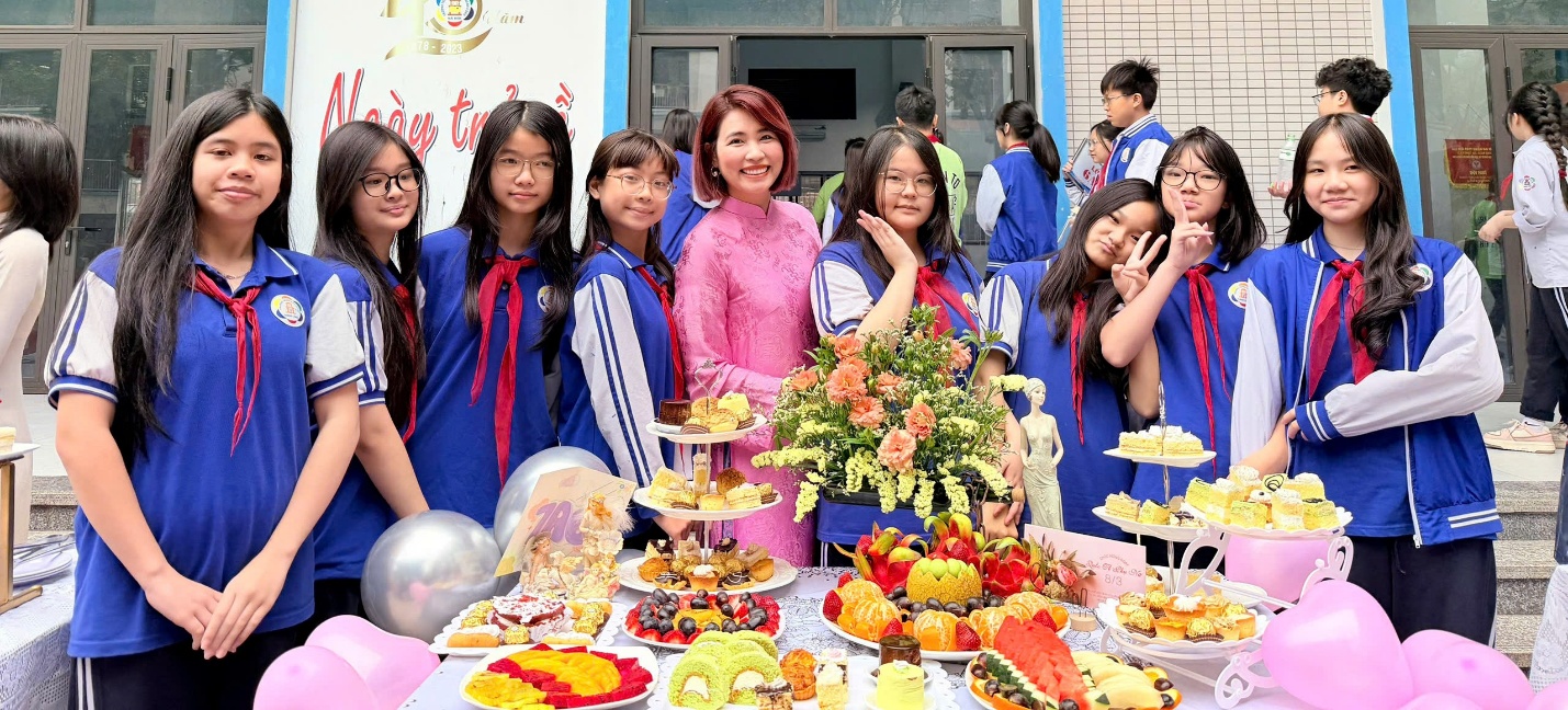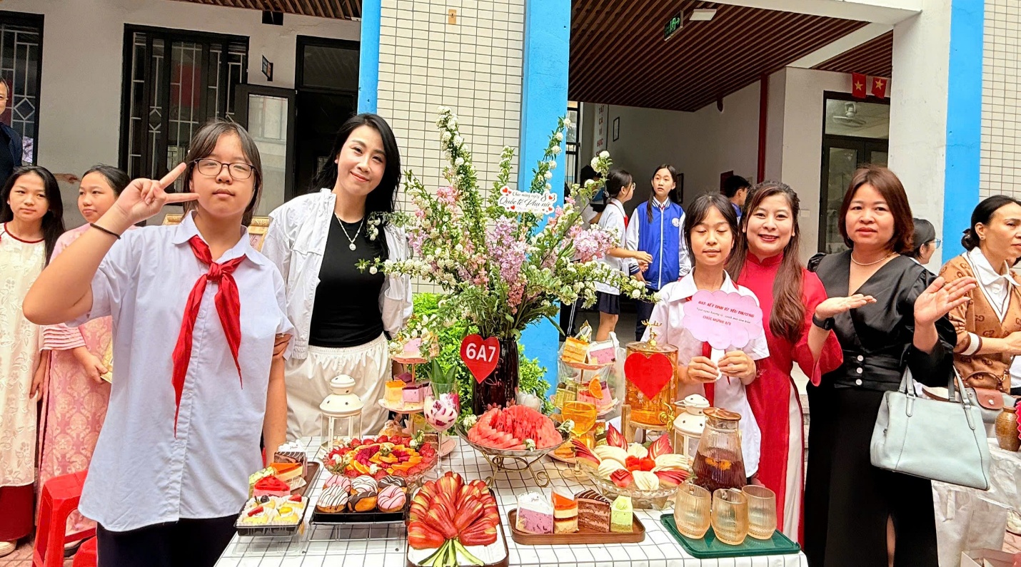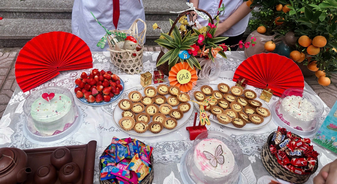 Đáng chú ý, đằng sau những bàn tiệc được trang trí tỉ mỉ ấy còn có sự đồng hành, tư vấn đầy tận tình của các bà mẹ học sinh – những “nội tướng” khéo léo trong mỗi gia đình. Từ việc lựa chọn món bánh, cách phối màu, sắp xếp bố cục cho đến những chi tiết trang trí nhỏ nhất, các mẹ đã chia sẻ kinh nghiệm và truyền cảm hứng cho các con. Sự phối hợp giữa gia đình và nhà trường đã tạo nên một hoạt động vừa vui tươi, vừa giàu ý nghĩa giáo dục.