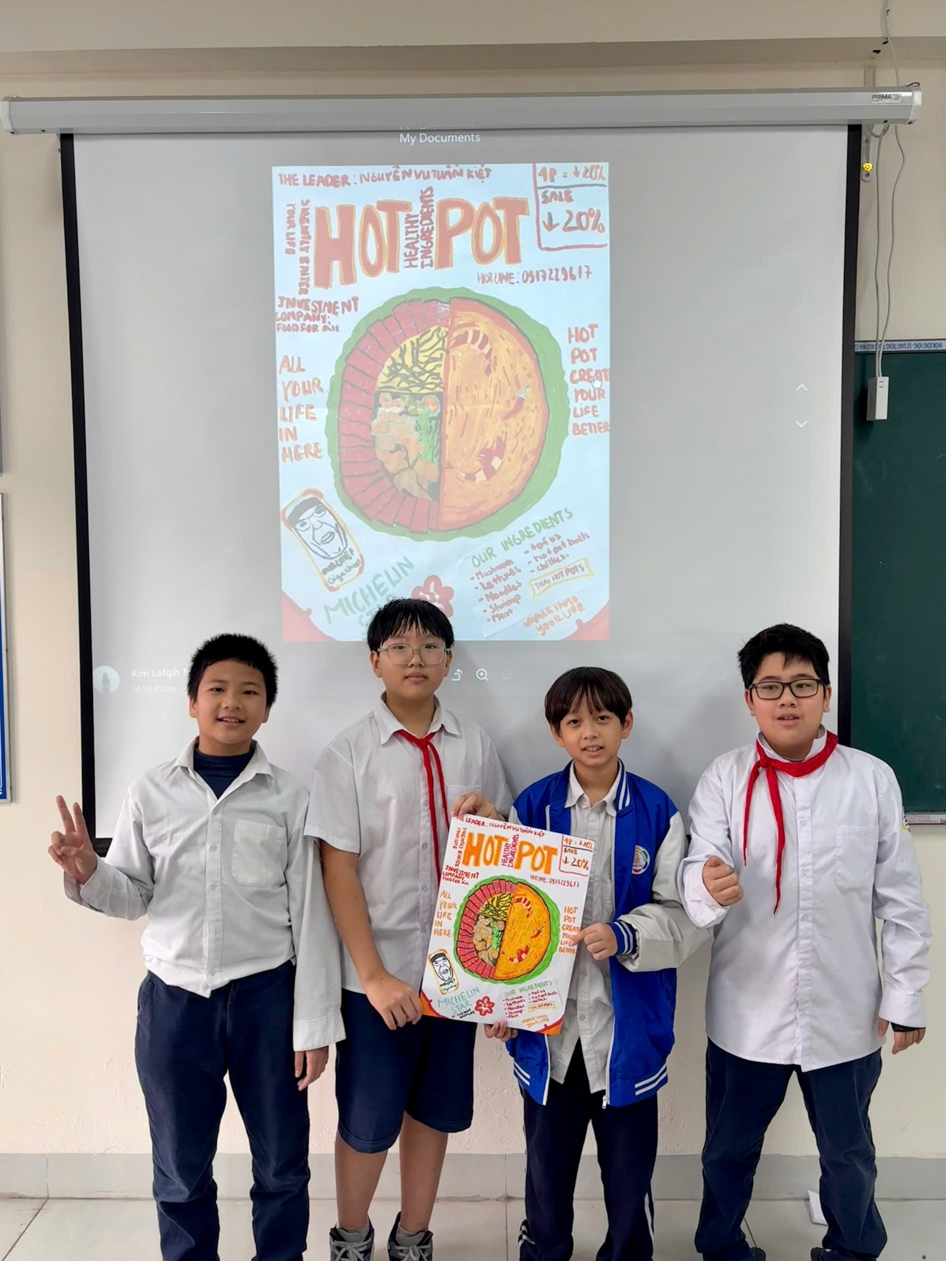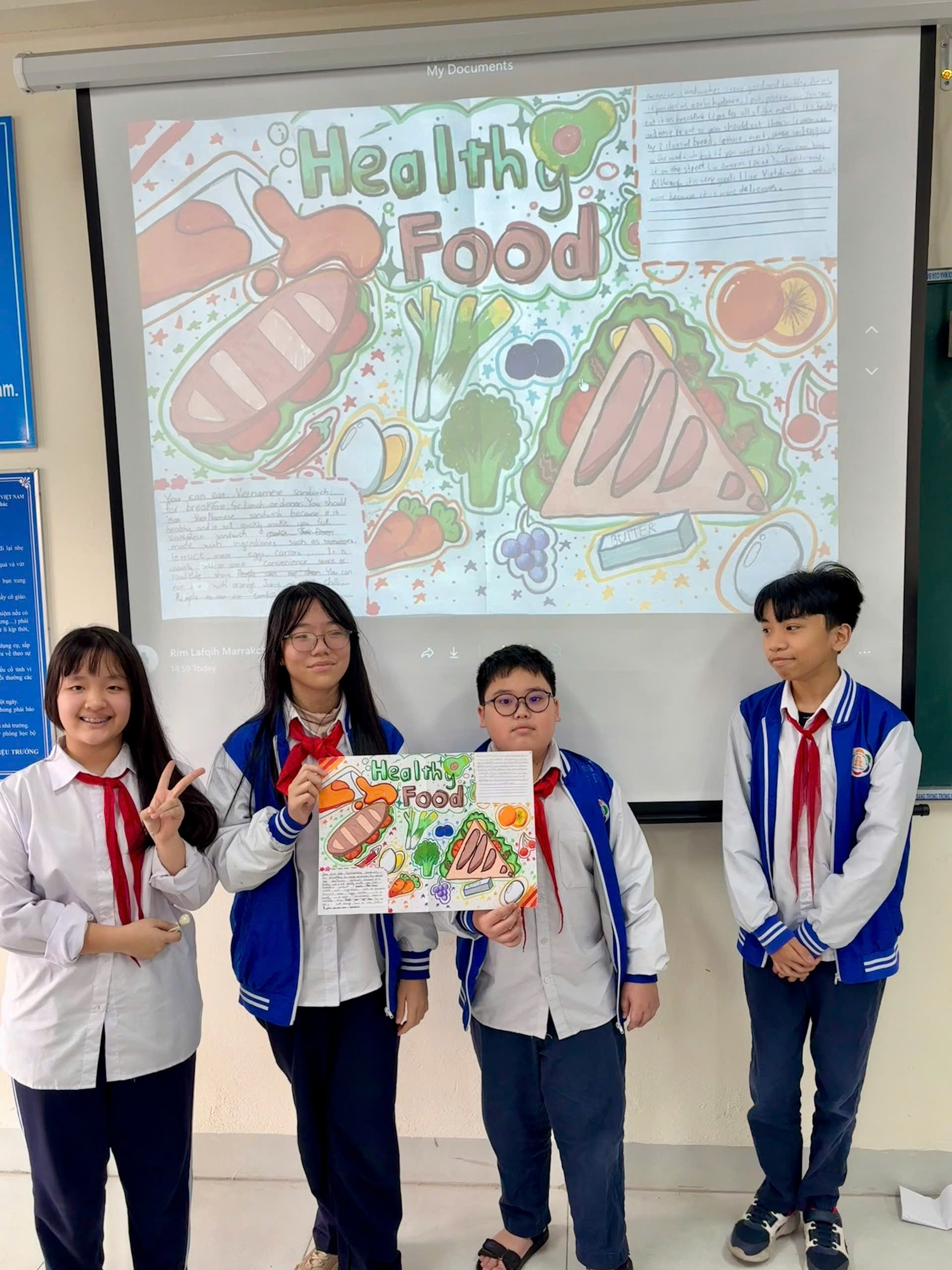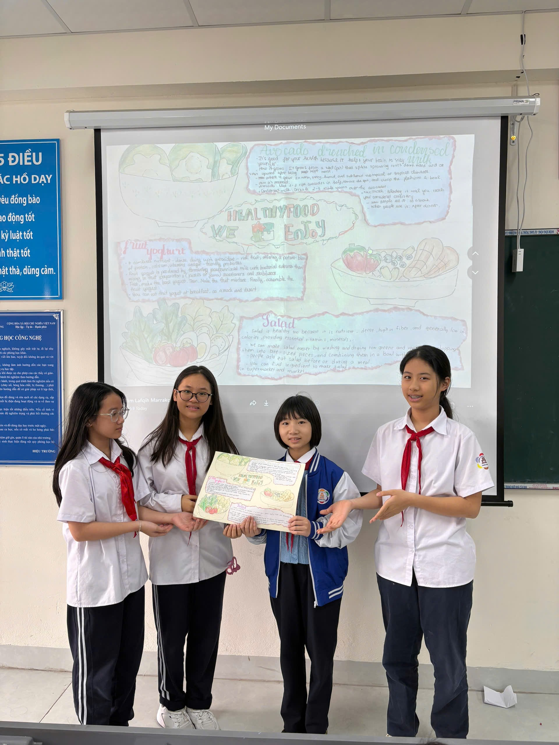 Kết thúc tiết học, chúng em không chỉ học thêm được nhiều từ vựng và kiến thức mới về các loại thực phẩm giàu dinh dưỡng, mà còn rèn luyện được tinh thần đoàn kết, kỹ năng làm việc nhóm và sự tự tin khi thuyết trình trước lớp. Đây thực sự là một tiết học tiếng Anh ý nghĩa, đáng nhớ và đầy cảm hứng đối với chúng em.